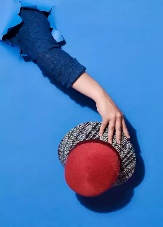 Styling-Tipp: Wenn du dich zunächst vorsichtig an die Farbe herantasten möchtest, integriere den roten Hut zum Beispiel mit roten Taschen und Schuhen in dein Outfit, ohne zu aufdringlich zu wirken.
