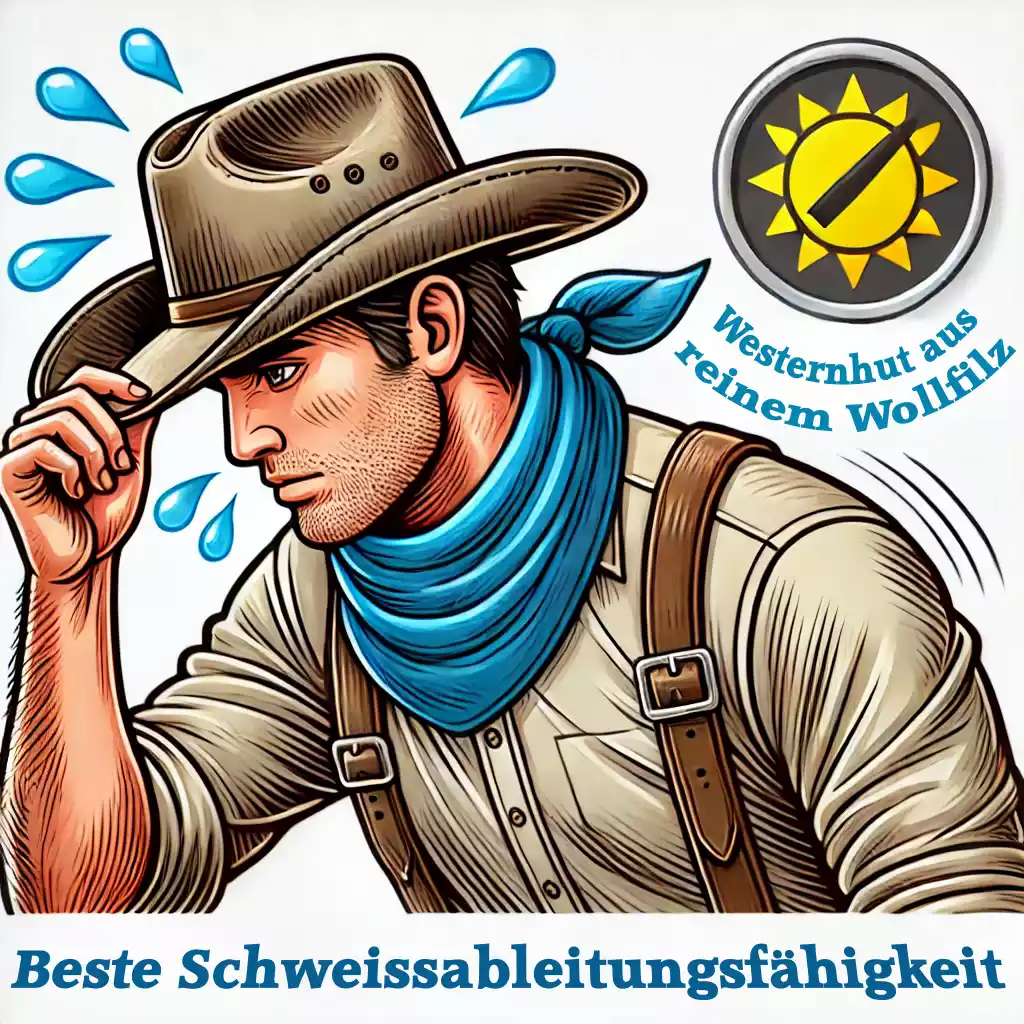Westernhüte aus Wollfilz sind nicht nur aufgrund ihrer historischen Bedeutung und ihres klassischen Designs beliebt, sondern auch wegen ihrer funktionalen Vorteile wie z.B. Wärmespeicherung, Atmungsaktivität und Feuchtigkeitsregulierung.