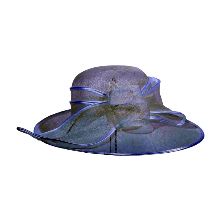 Der breitrandige Anlasshut zeichnet sich durch seine transparente, luftige Struktur aus, die von der kunstvoll drapierten Sisal-Schlaufe gekonnt ergänzt wird. Diese exklusive Kombination aus Schlichtheit und Raffinesse schafft ein elegantes Gesamtbild, das sowohl zeitgemäß als auch klassisch wirkt.