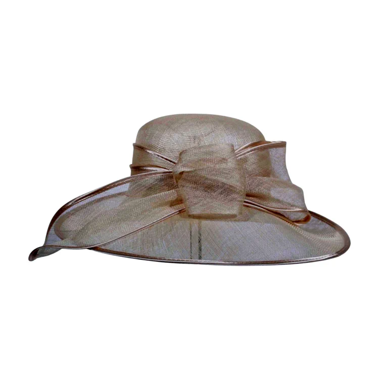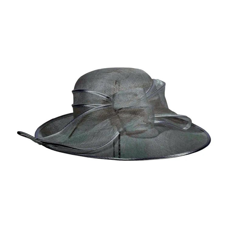 Lassen Sie sich von der luftigen Anmut dieses breitrandigen Anlasshutes verzaubern! Gefertigt aus hochwertigem Sisal, besticht dieser Hut durch seine feine Transparenz, die nicht nur visuell beeindruckt, sondern auch für ein angenehm leichtes Tragegefühl sorgt. Die kunstvoll geformte Sisal-Schlaufe verleiht dem Design eine subtile Verspieltheit und sorgt für einen edlen, femininen Look.