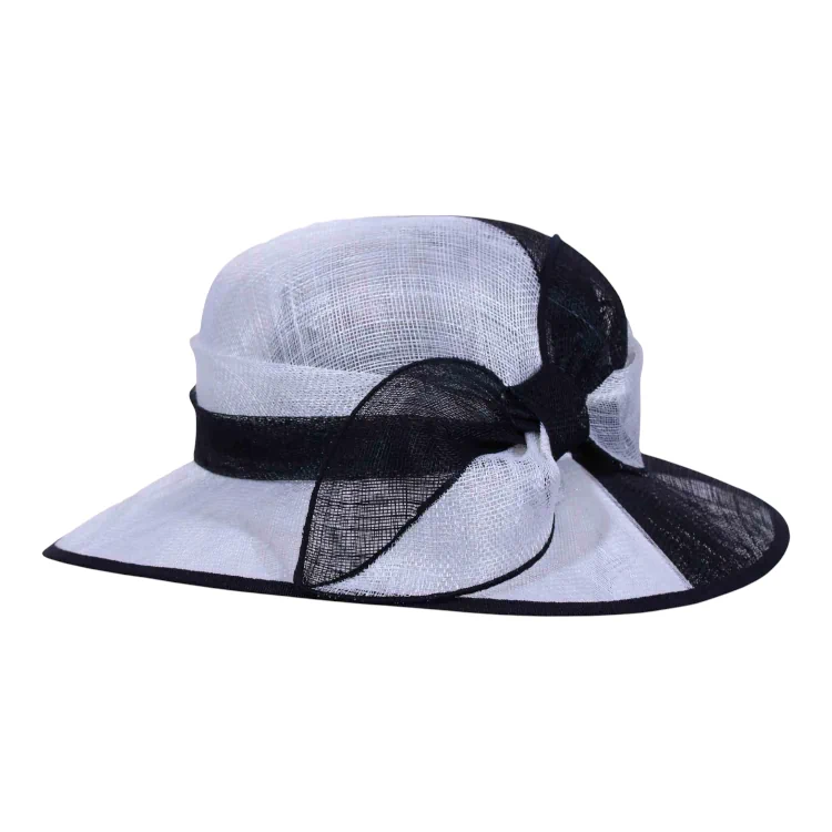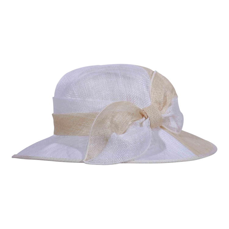 Lassen Sie sich von der exquisiten Leichtigkeit dieses Anlasshutes verzaubern! Gefertigt aus 100% hochwertigem Sisal, begeistert dieser Hut mit seiner edlen Transparenz und der kunstvollen Schleifenverzierung. Die breite Krempe sorgt nicht nur für einen stilvollen Auftritt, sondern bietet auch angenehmen Sonnenschutz. Der Hut ist in zwei eleganten Farbvarianten erhältlich: