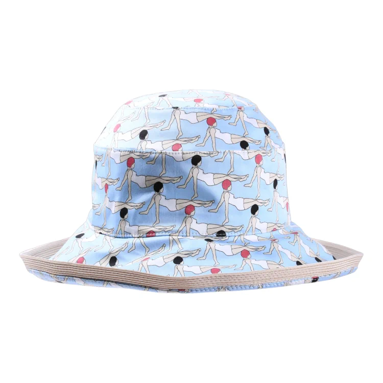 Lust auf ein echtes Statement-Piece? Der Aufschlaghut mit Badenixen bringt Humor, Leichtigkeit und stilvolles Retro-Flair in Ihre Sommergarderobe. Das Modell begeistert mit einem charmanten Allover-Print auf himmelblauem Baumwollstoff, der an sommerliche Badefreuden erinnert. Die klassische Form mit breiter Krempe und strukturierendem Aufschlag sorgt für optimalen Schutz und angenehmen Tragekomfort perfekt für Sonnenanbeter:innen mit modischem Augenzwinkern.