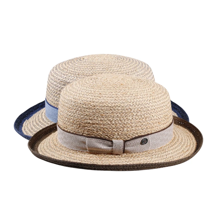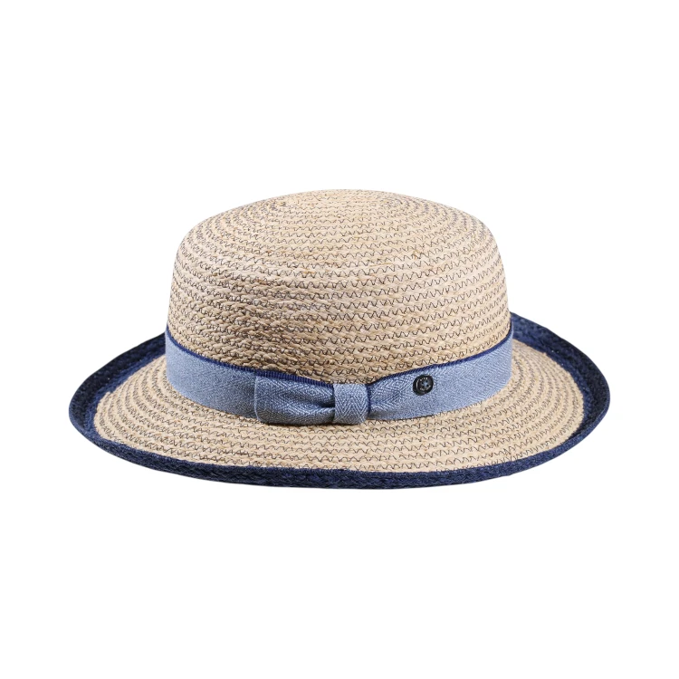 Leicht, stilvoll und mit unverwechselbarer Silhouette dieser edle Damen Aufschlaghut aus fein vernähter Raffia verkörpert sommerliche Raffinesse auf höchstem Niveau. Die flache, klar definierte Krone mit 8.5 cm Höhe verleiht ihm eine moderne, urbane Note, während die 7 cm breite, sorgfältig genähte Krempe mit 6 cm Aufschlag dem Modell seinen charakteristischen, charmanten Ausdruck schenkt.
