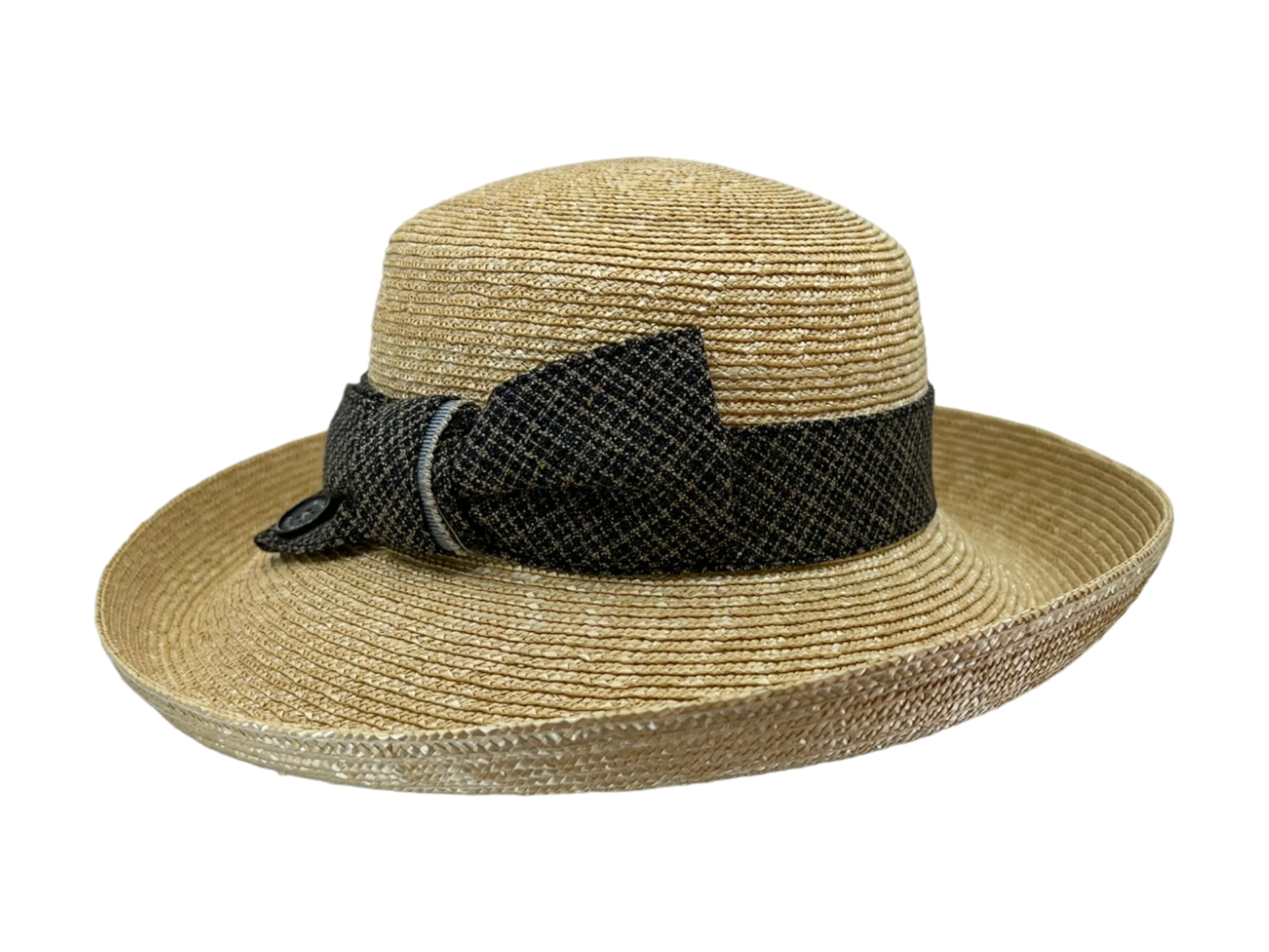 Die harmonische Kombination aus Naturstroh und luxuriöser Seide verleiht diesem Hut seine exklusive Ausstrahlung. Die traditionelle Masche mit Qualitätsemblem sowie die strukturierte Karo-Optik setzen modische Akzente, ohne den klassischen Charakter zu verlieren.