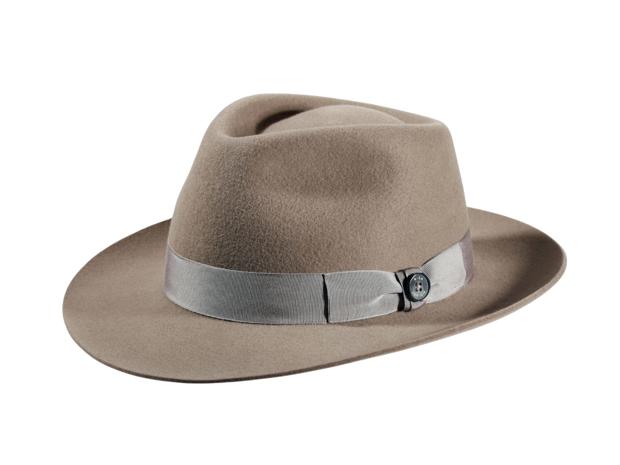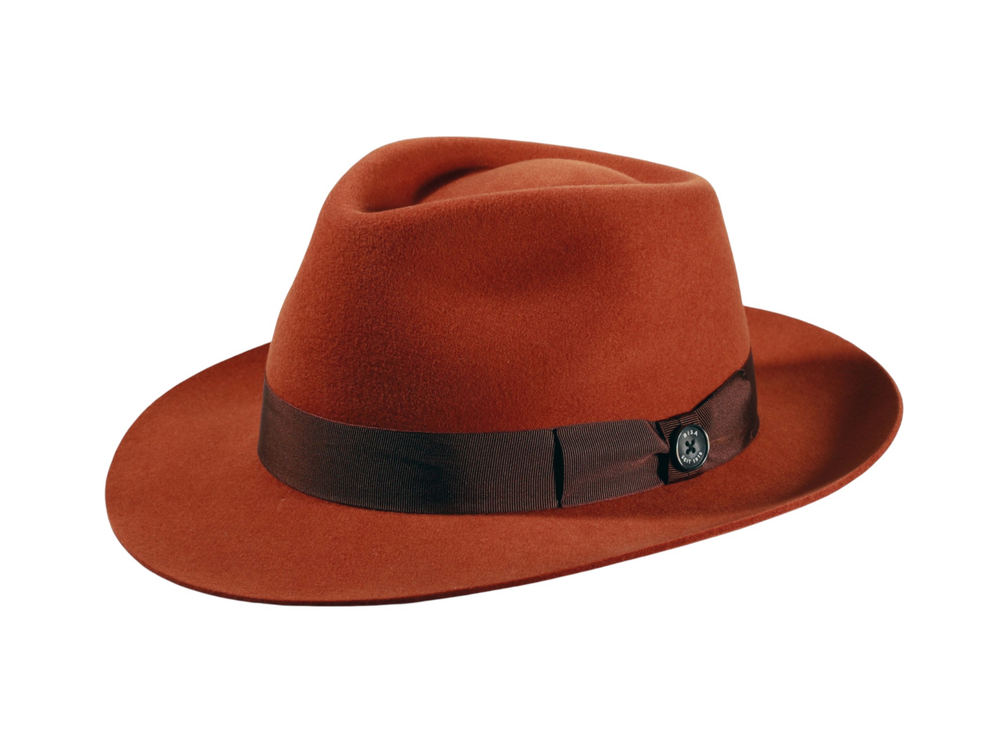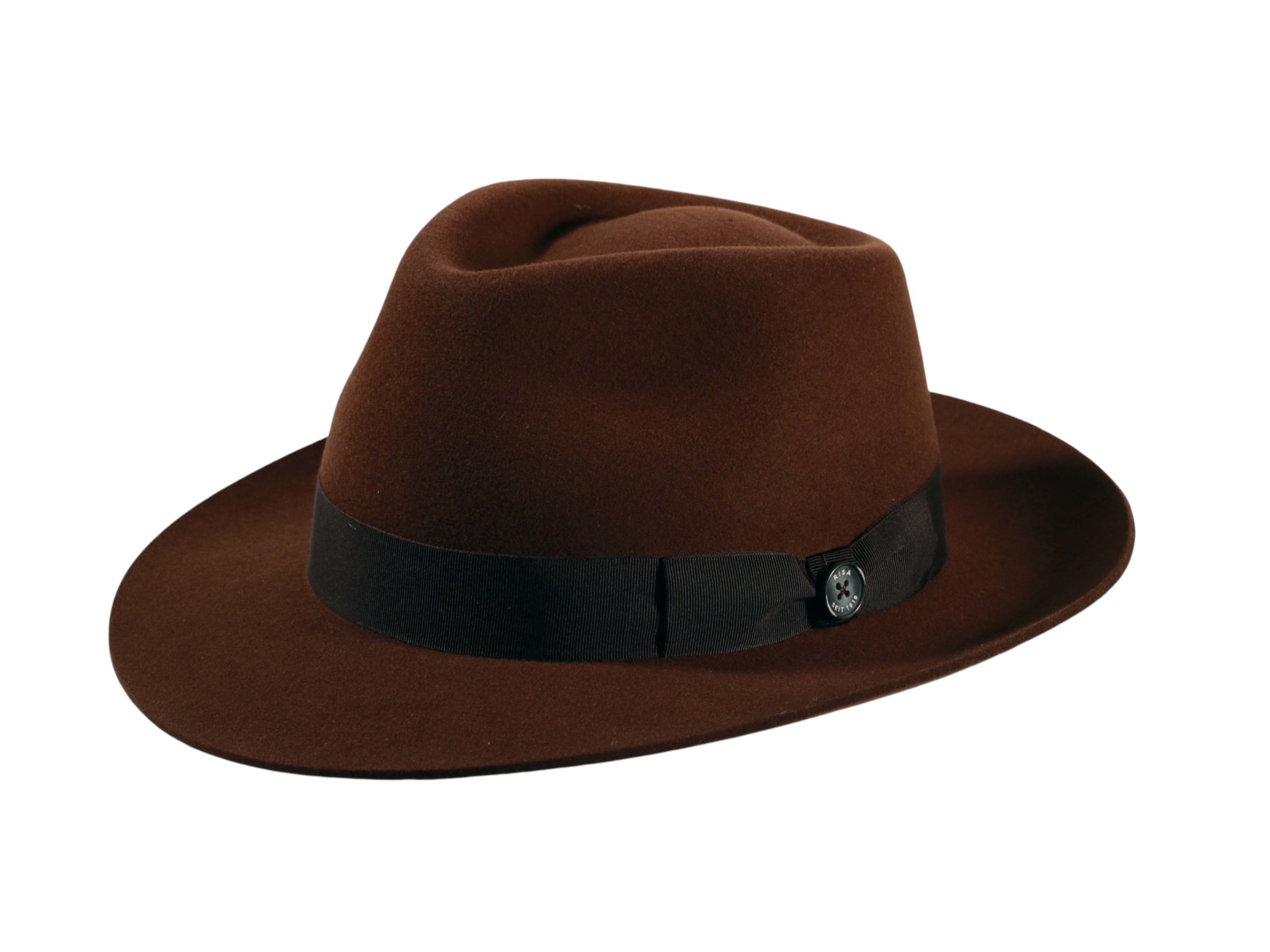 Gefertigt aus 100% hochwertigem Wollfilz und zusätzlich imprägniert, vereint dieser Hut Eleganz, Funktionalität und Widerstandskraft. Die klare Form mit 6 cm Krempenbreite und einer Kopfhöhe von 10,5 cm verleiht ihm eine zeitlose Ausstrahlung. Das feine Rebsband mit Masche und dem ikonischen „Risa seit 1919“-Knopf rundet das Design stilvoll ab.