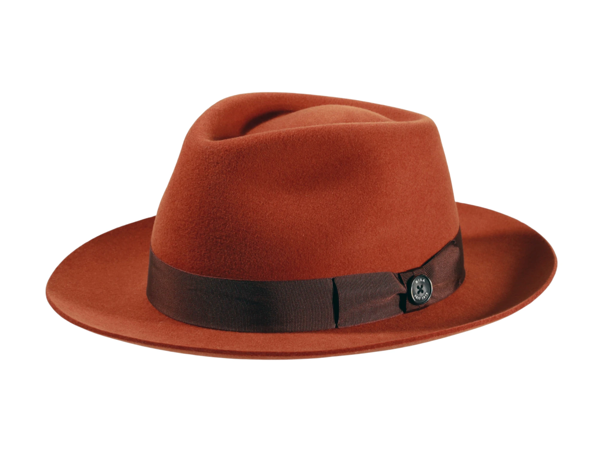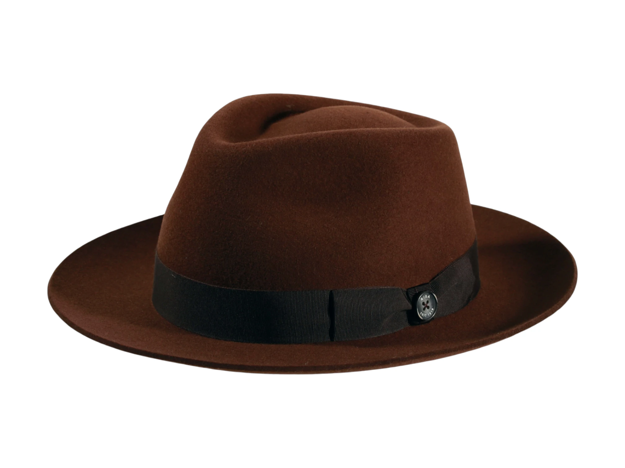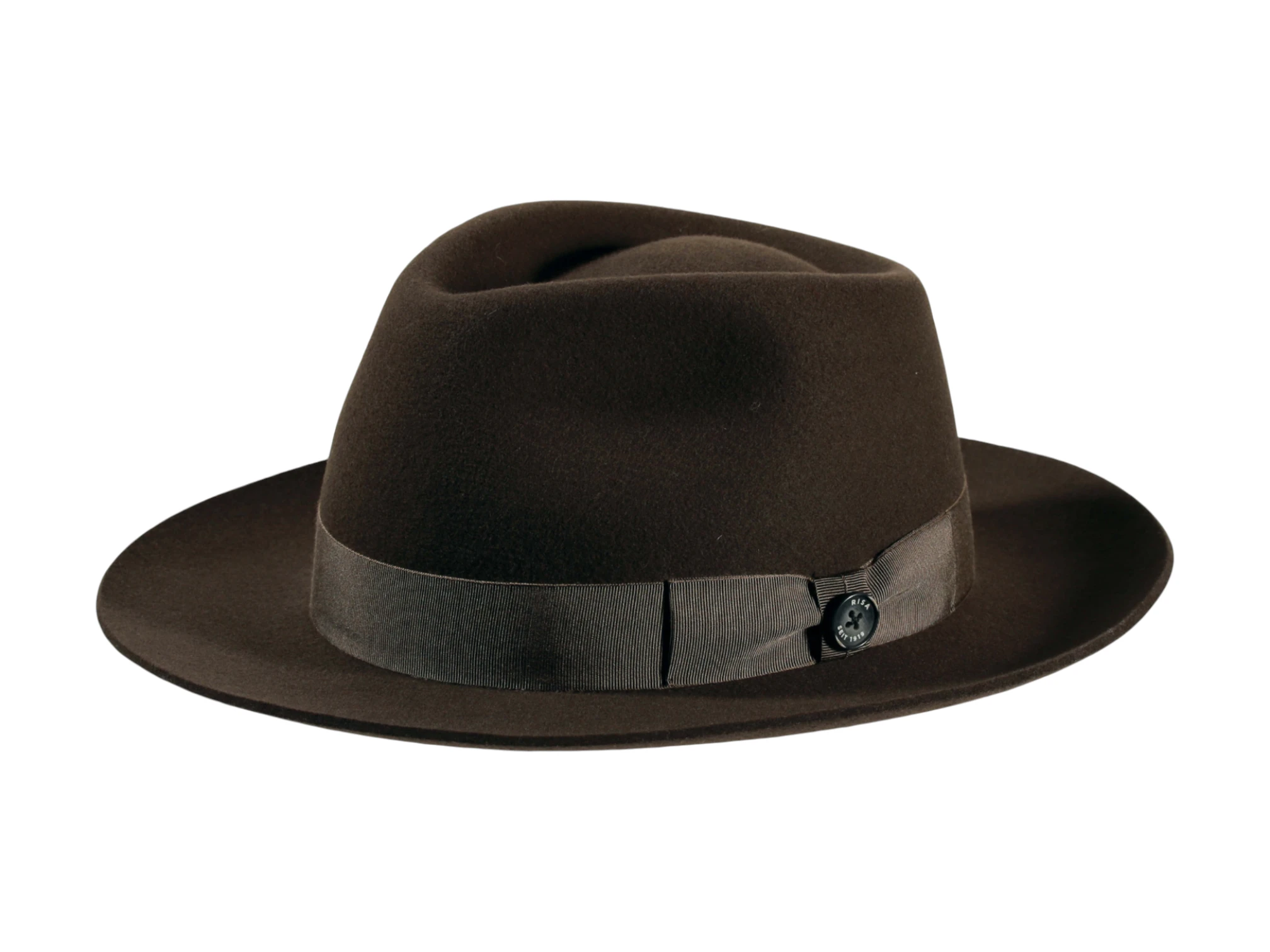 Gefertigt aus 100% hochwertigem Wollfilz und zusätzlich imprägniert, vereint dieser Hut Eleganz, Funktionalität und Widerstandskraft. Die klare Form mit 6 cm Krempenbreite und einer Kopfhöhe von 10,5 cm verleiht ihm eine zeitlose Ausstrahlung. Das feine Rebsband mit Masche und dem ikonischen „Risa seit 1919“-Knopf rundet das Design stilvoll ab.