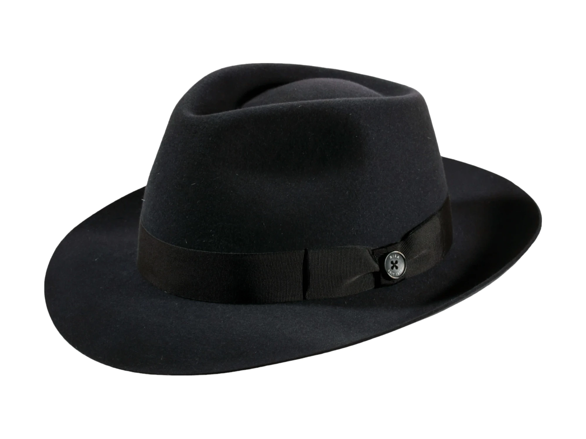 Gefertigt aus 100% hochwertigem Haarfilz, besticht er durch seine edle Haptik, klare Linienführung und eine traditionsbewusste Fertigung in der Schweiz. Die harmonische Garnitur mit einem Rebsband und dem ikonischen Qualitätsknopf „Risa seit 1919“ rundet das Design luxuriös ab. Das saubere Textilinnenband sorgt für angenehmen Tragekomfort, auch bei langen Tagen.