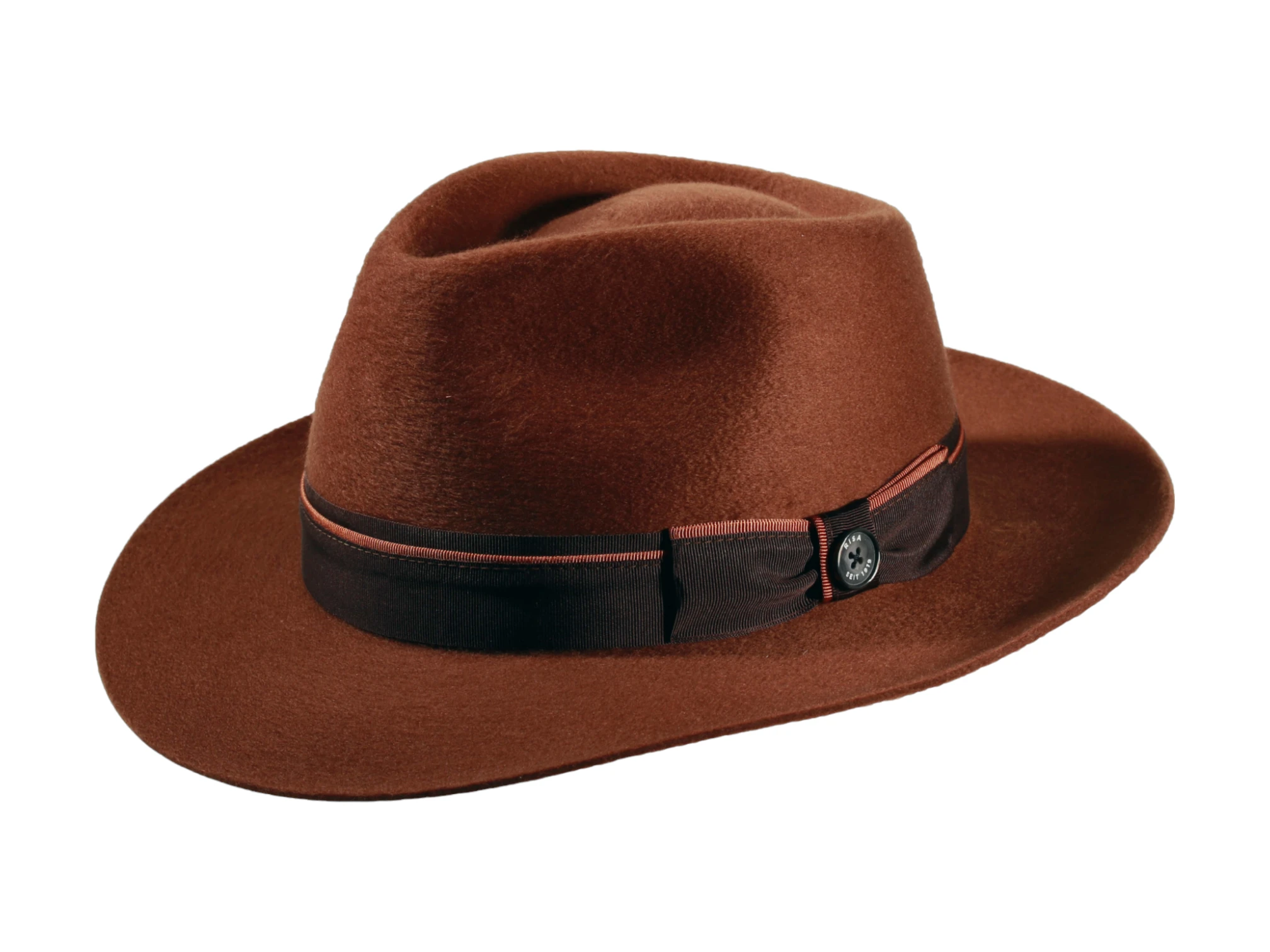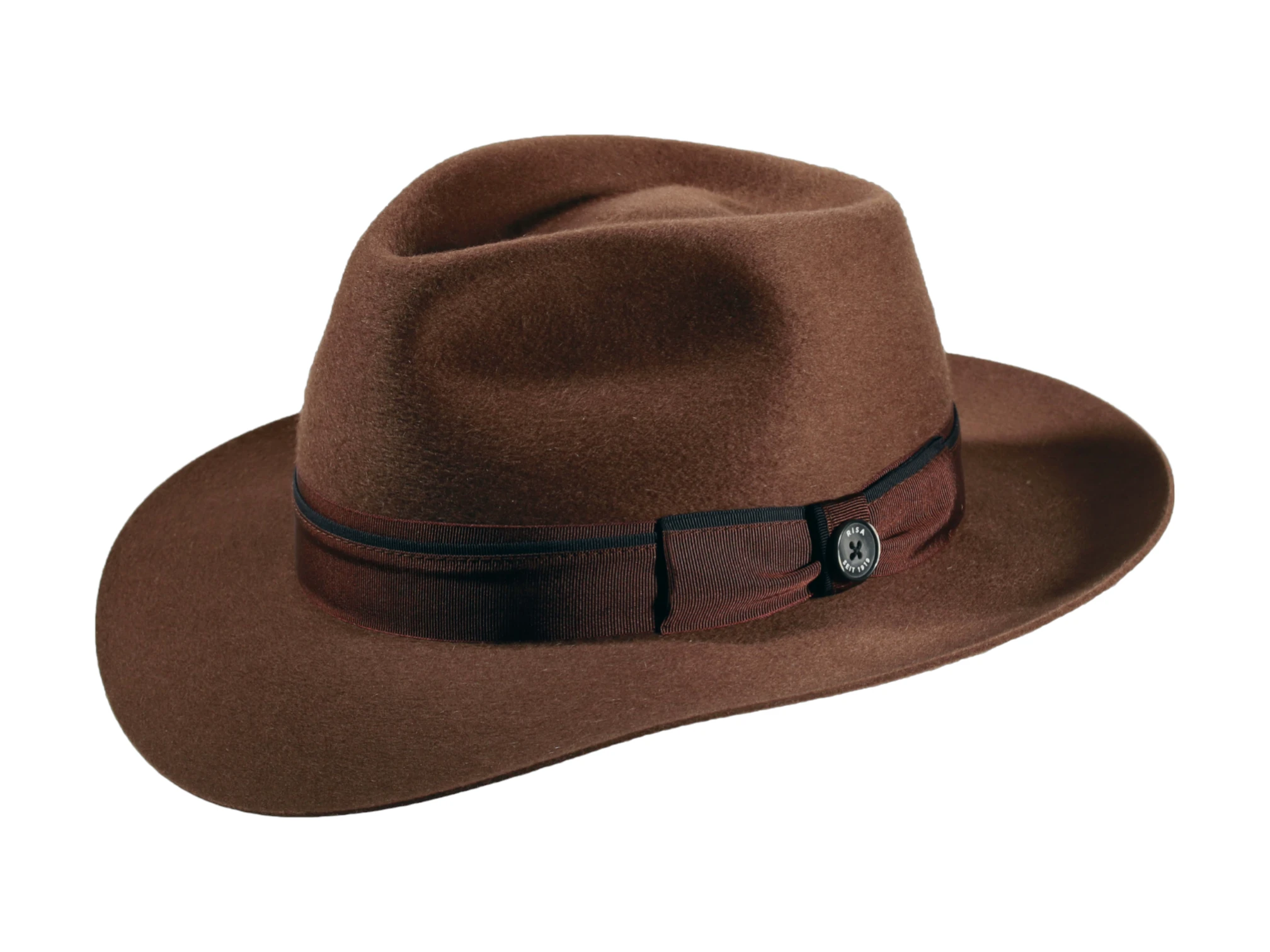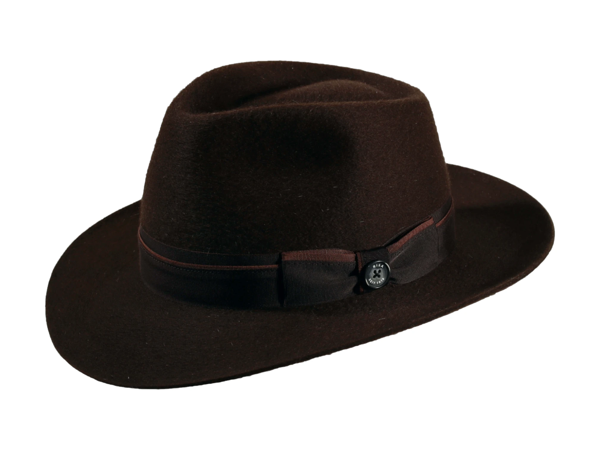 Das feine Rebsband mit Masche und dem ikonischen Qualitätsknopf „Risa seit 1919“ verleiht dem Hut seine unverwechselbare Signatur. Für höchsten Tragekomfort sorgt das sorgfältig eingenähte Textilinnenband. Dank edler Farbvarianten – von klassischem Schwarz über warmes Camel bis hin zu ausdrucksstarkem Rostbraun – wird er zum stilvollen Begleiter für jede Gelegenheit.