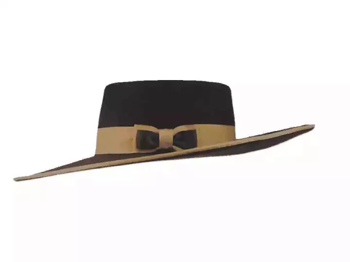 Ein Hut, der Geschichte schreibt und Stil verkörpert: Der südkalifornische Buckaroo Westernhut in den Farben Schwarz, Braun, Hellgrau ist eine Hommage an die legendären altkalifornischen Westernreiter, perfekt im Old Style interpretiert mit dem handwerklichen Anspruch der Risa Hutwerkstatt. Gefertigt aus 100 % veredeltem Wollfilz, vereint dieser außergewöhnliche Hut robuste Qualität mit luxuriöser Leichtigkeit. Seine klare Linienführung – die flache, leicht geschwungene Krempe mit ca. 10 cm Breite und die markante Kopfhöhe von ca. 8,5 cm – bringt eine zeitlose Silhouette zur Geltung, die sowohl Tradition als auch Trendbewusstsein vereint.