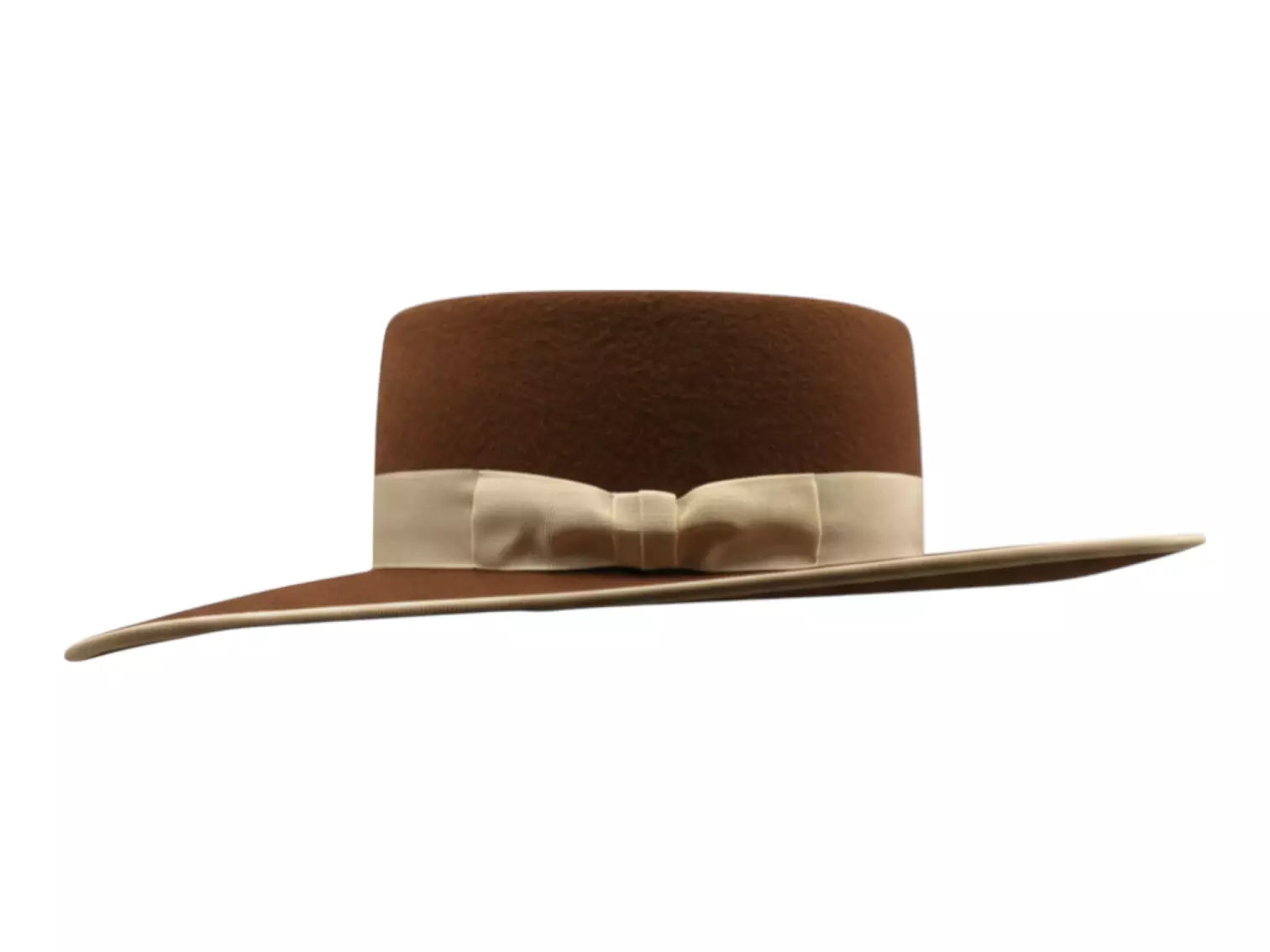 Erhaben, präzise und kompromisslos stilvoll – der „Buckaroo“ ist eine Hommage an die goldene Ära des Wilden Westens und zugleich Ausdruck höchster Handwerkskunst. Gefertigt aus feinstem Biberhaar, gehört dieser Premium Westernhut zu den exklusivsten Kopfbedeckungen der Old West Kollektion. Die perfekte Balance aus Funktion, Form und Eleganz macht ihn zum begehrten Begleiter für stilbewusste Westernliebhaber und Sammler echter Manufakturarbeit.
