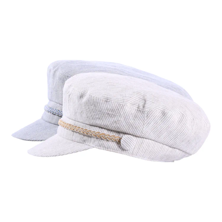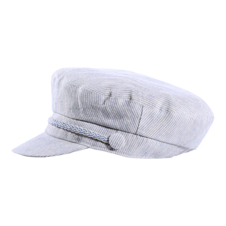 Die Mütze zeigt sich mit klassischer Camaret-Silhouette: flach verlaufende Kappe, formstabil und dennoch flexibel, mit dezentem, vorgeneigtem Schirm. Die feinen Streifen verlaufen harmonisch und unterstreichen die textile Struktur des Leinens. Jedes Detail ist durchdacht – von der Nahtführung bis zum passgenauen Innenfutter.