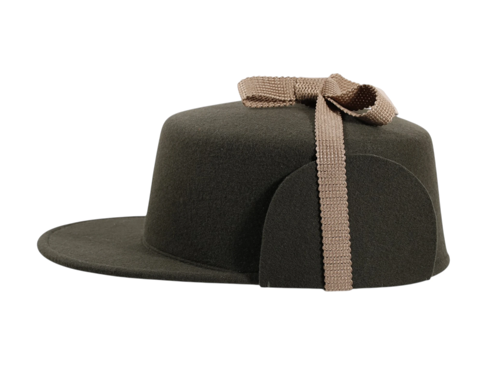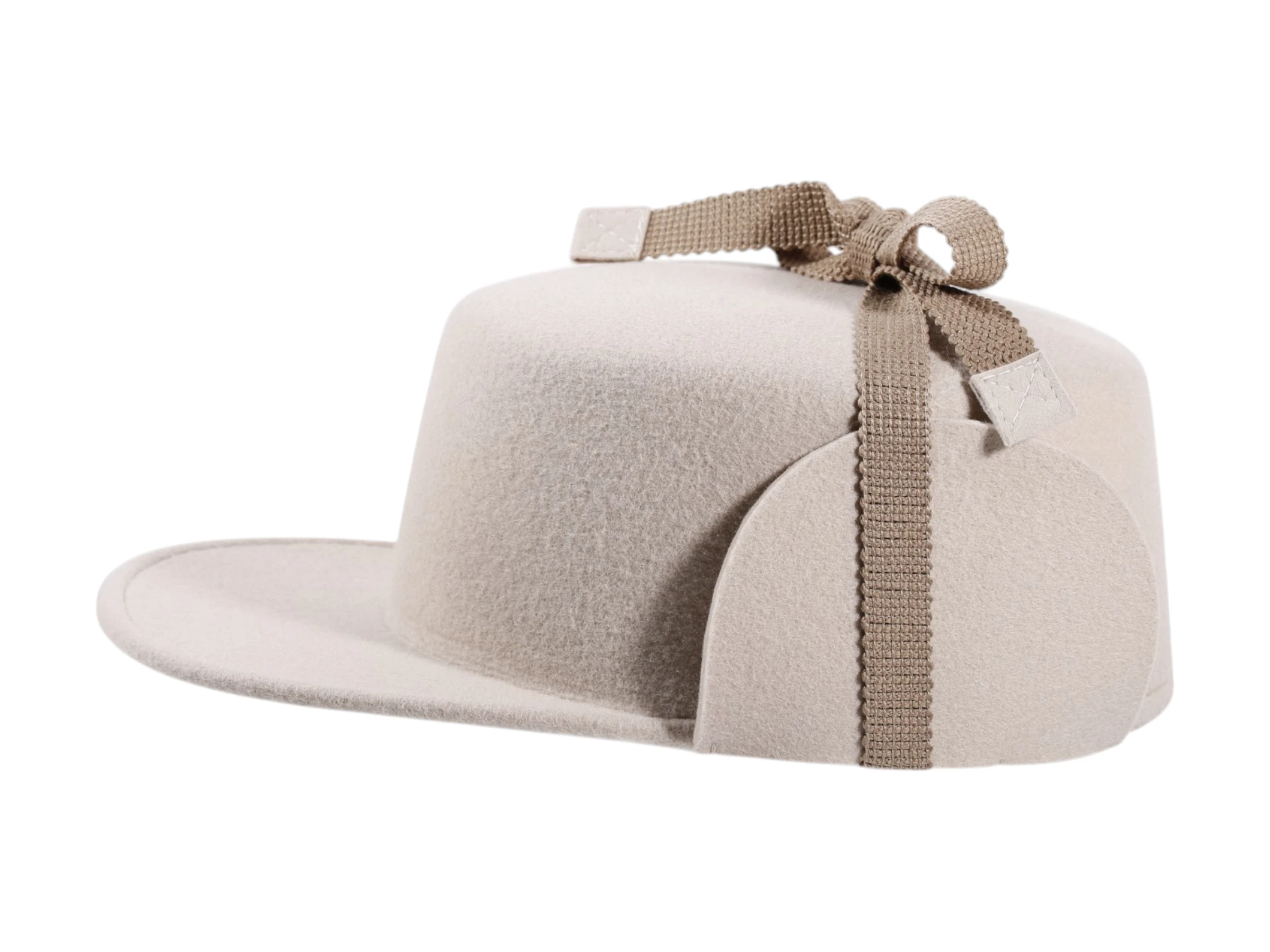 Besonderes Detail sind die funktionalen Ohrenklappen, die wahlweise unter dem Kinn oder über der Kappe fixiert werden können. Ein robustes Baumwollband ermöglicht sicheren Halt auch an windigen Tagen.