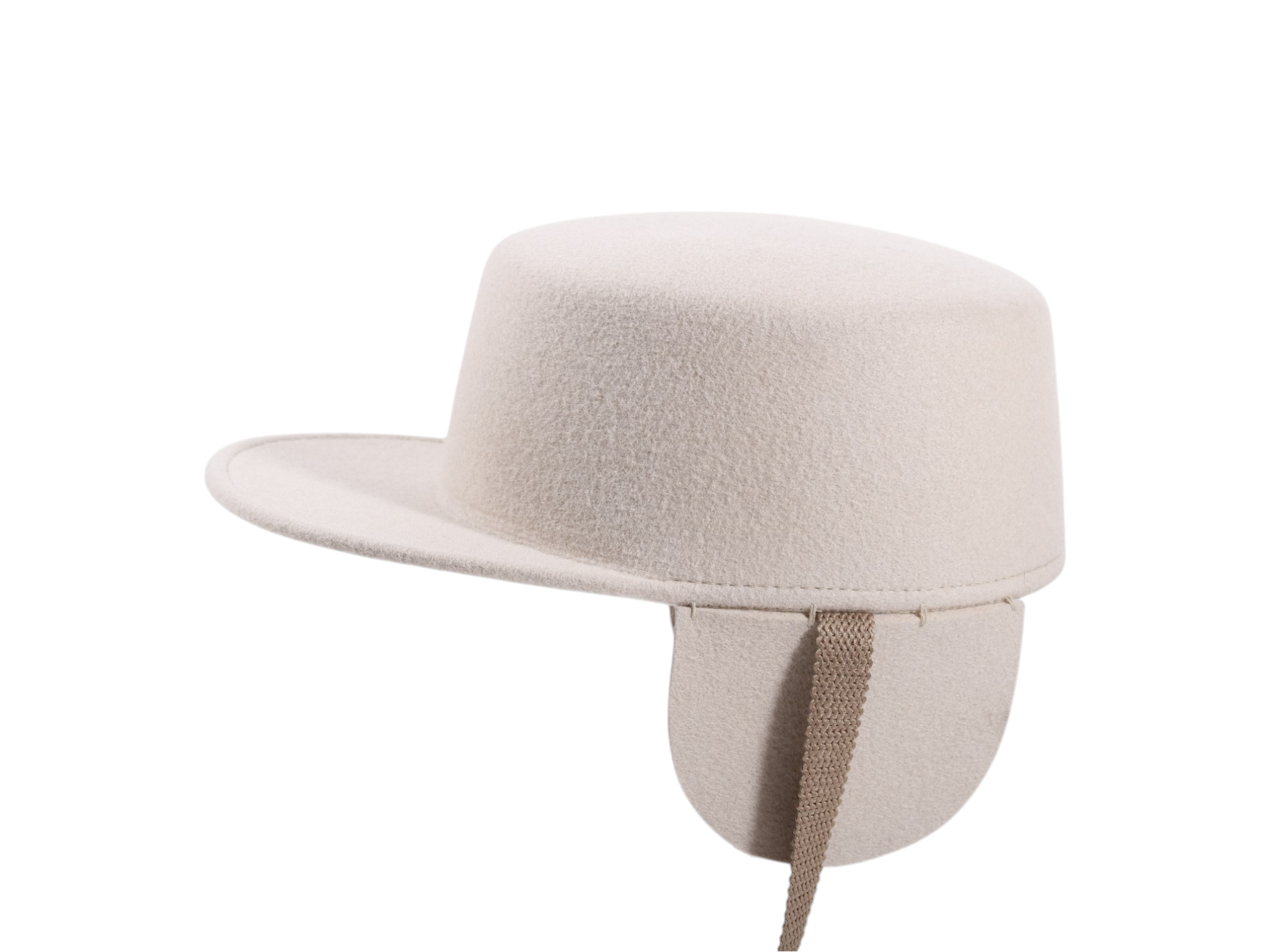 Besonderes Detail sind die funktionalen Ohrenklappen, die wahlweise unter dem Kinn oder über der Kappe fixiert werden können. Ein robustes Baumwollband ermöglicht sicheren Halt auch an windigen Tagen.
