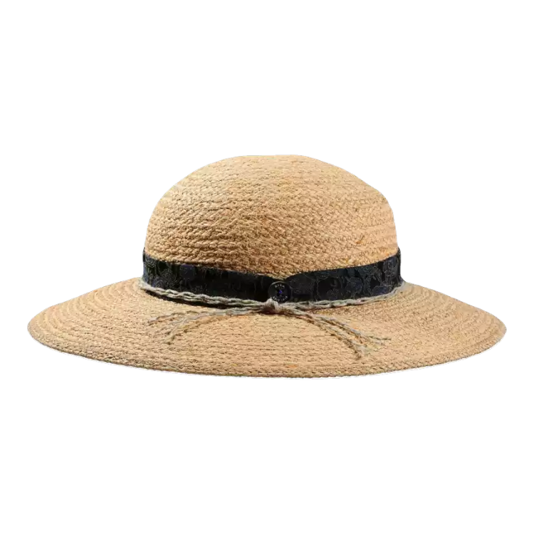 Der Cloche-Hut überzeugt durch sein harmonisches Zusammenspiel von rustikalem Raffia und einer weich geformten Krone. Die stoffbezogene Garnitur bringt Farbe und Struktur ins Spiel, während die dezente Hanfschnur dem Modell eine charmante Natürlichkeit verleiht. Ein echtes Meisterstück in Sachen Form, Funktion und Detailverliebtheit.