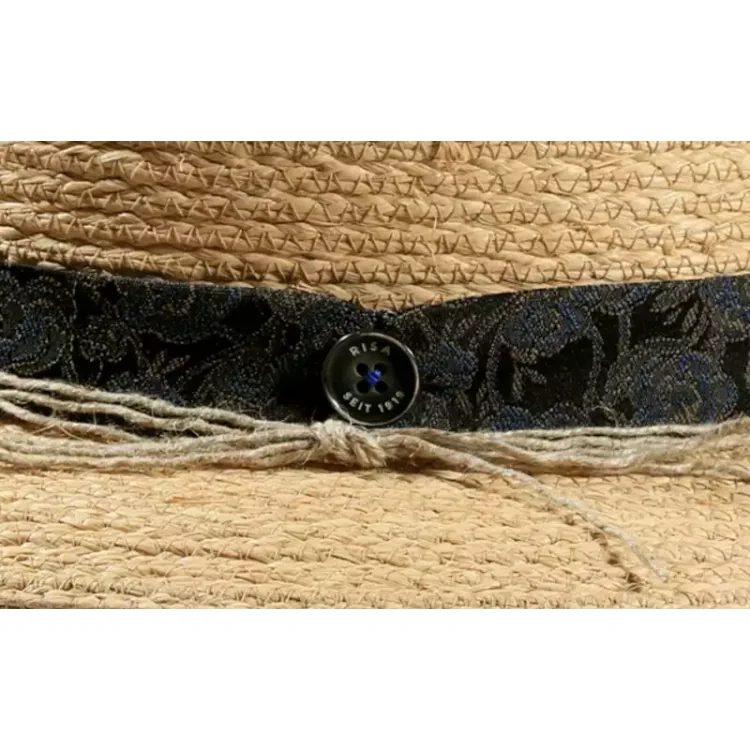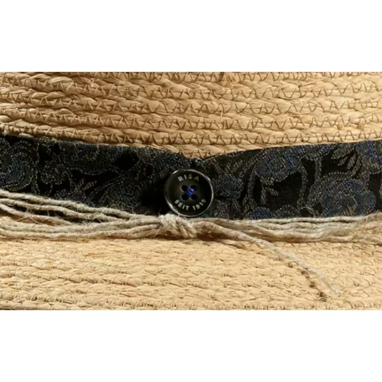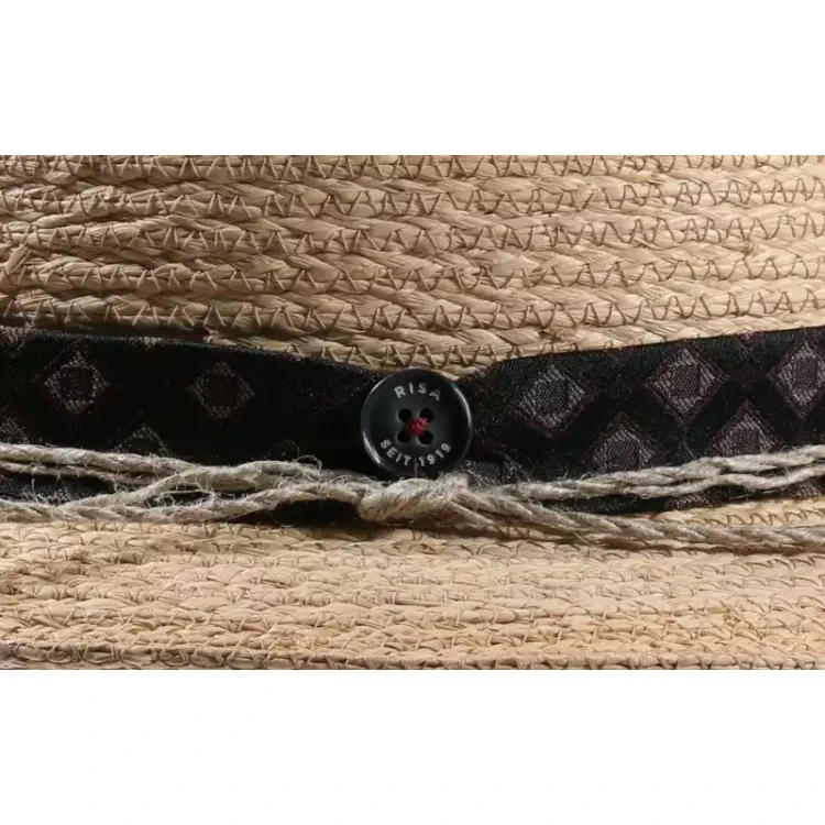 Garnitur: Stoffhutband mit Risa Qualitätsknopf und dekorativer Hanfschnur