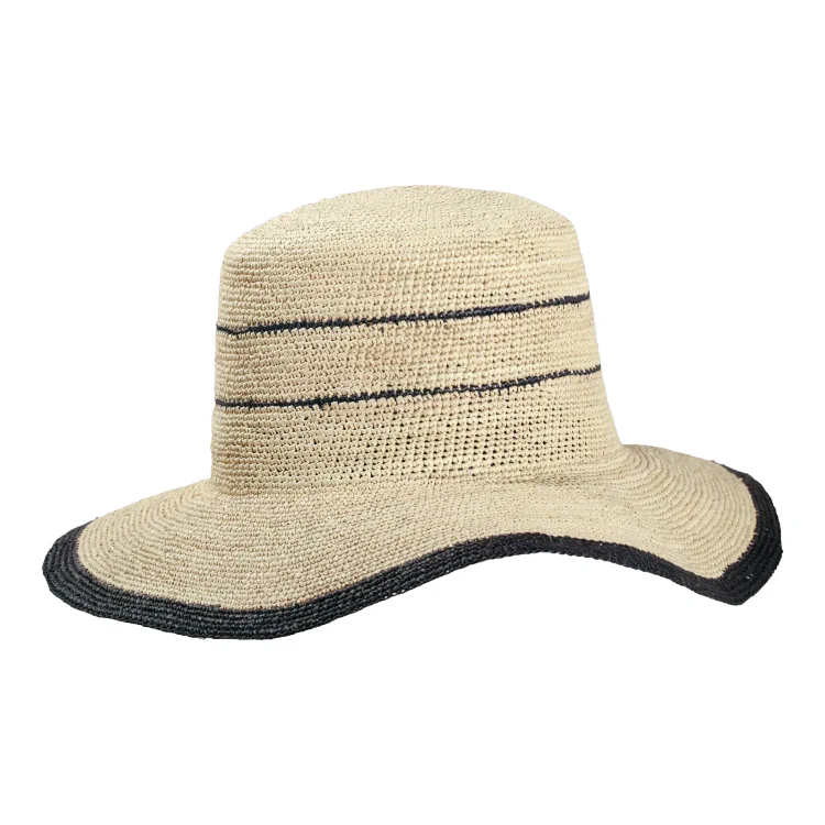 Dieser gehäkelte Panama-Hut wird mit Liebe zum Detail in Ecuador gefertigt, einem Land, das weltweit für seine traditionelle Hutflechtkunst bekannt ist. Die aufwendige Häkeltechnik sorgt für ein luftiges Tragegefühl, während die verstärkten Streifen und der blaue Rand dem Hut eine elegante Struktur verleihen.