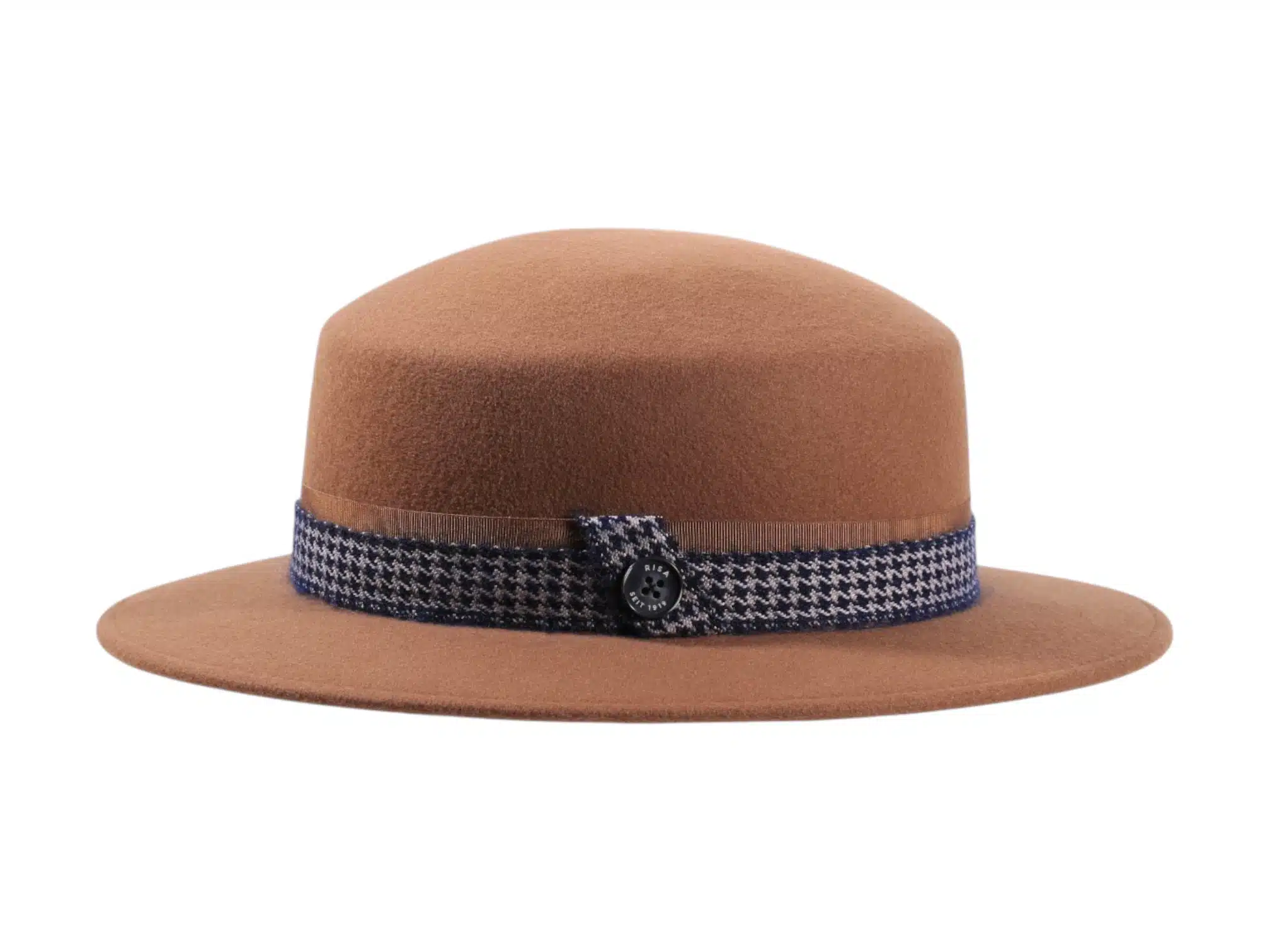 - Hutband: Rebsband mit Lederkordel und einem dekorativen Qualitätsknopf auf der Masche – sorgt für ein stilvolles
