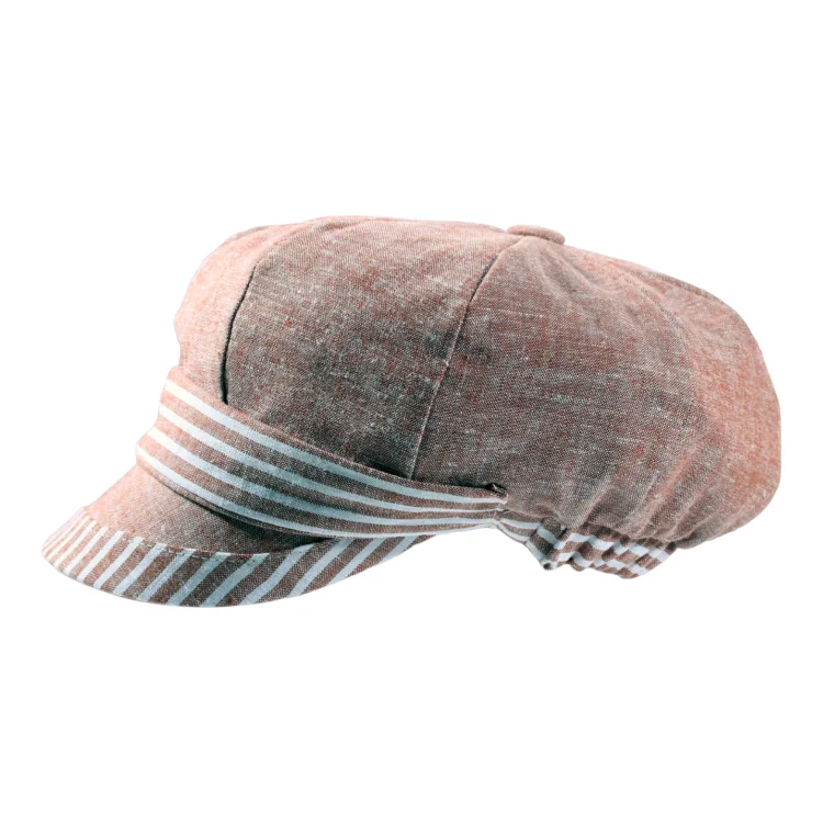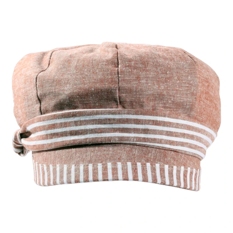 Das raffinierte Design dieser Mütze überzeugt durch seine weiche Form, die der Trägerin ein elegantes, feminines Aussehen verleiht. Die harmonische Kombination aus klassischen Streifen und natürlichem Leinen macht sie zu einem idealen Accessoire für warme Tage. Die hochwertige Verarbeitung garantiert ein langlebiges und edles Produkt, das zu zahlreichen Outfits passt.