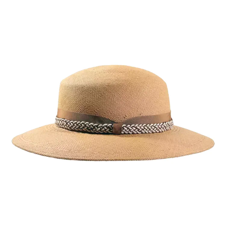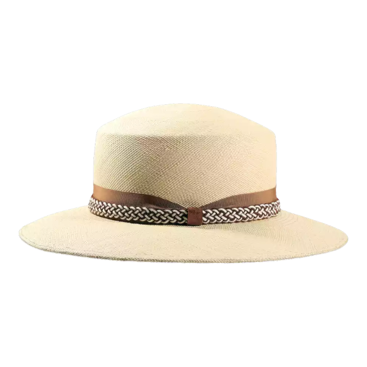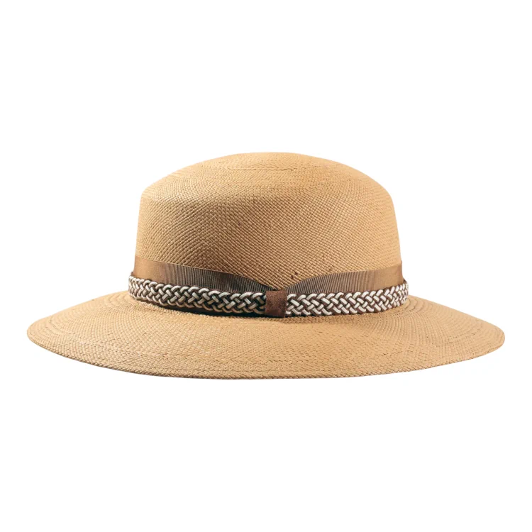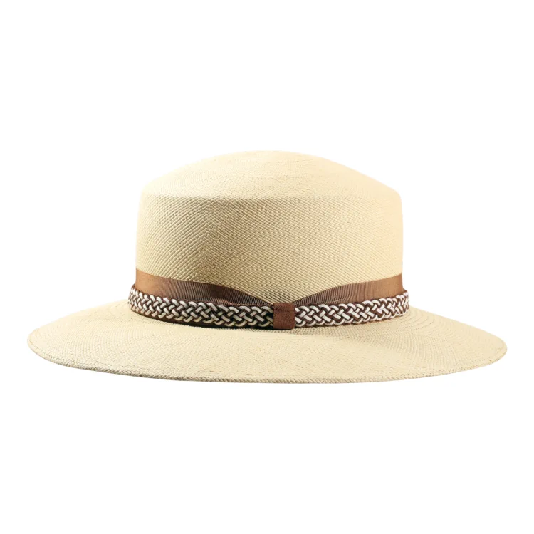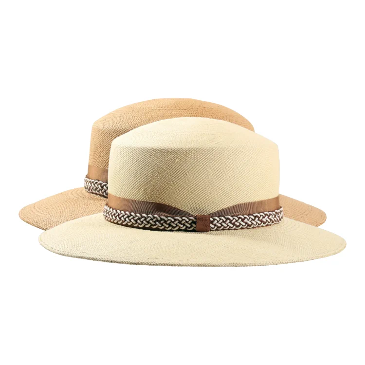 Natürliche Materialien: Reines Panamastroh, pflanzlich gefärbtes Rebsband, hochwertiges Echtledergeflecht