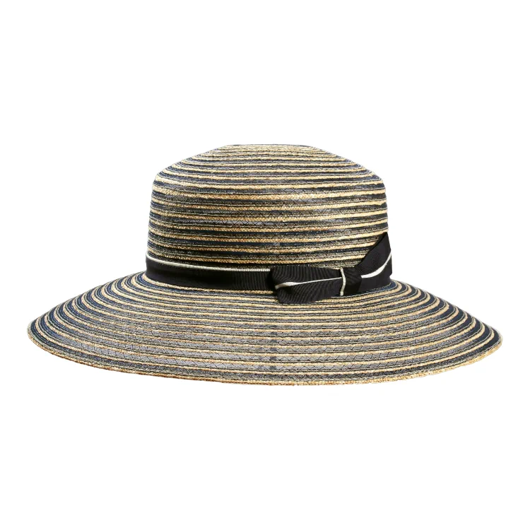 Tauchen Sie ein in die Welt der eleganten Leichtigkeit mit dem Damen Sommerhut Freiamt Hilfikerin einer raffinierten Kreation der Premium Freiamt Kollektion, die Tradition, Handwerkskunst und modische Finesse vereint. Dieser bezaubernde Hut begeistert mit einer harmonischen Mischung aus 50% feinstem Stroh und 50% robustem Polyester, die für eine perfekte Balance zwischen natürlicher Haptik und moderner Langlebigkeit sorgt. Seine großzügige 11 cm breite Krempe schützt Gesicht und Nacken zuverlässig vor der Sonne, während die 9,5 cm hohe, sanft abgerundete Krone für eine feminine Silhouette sorgt.