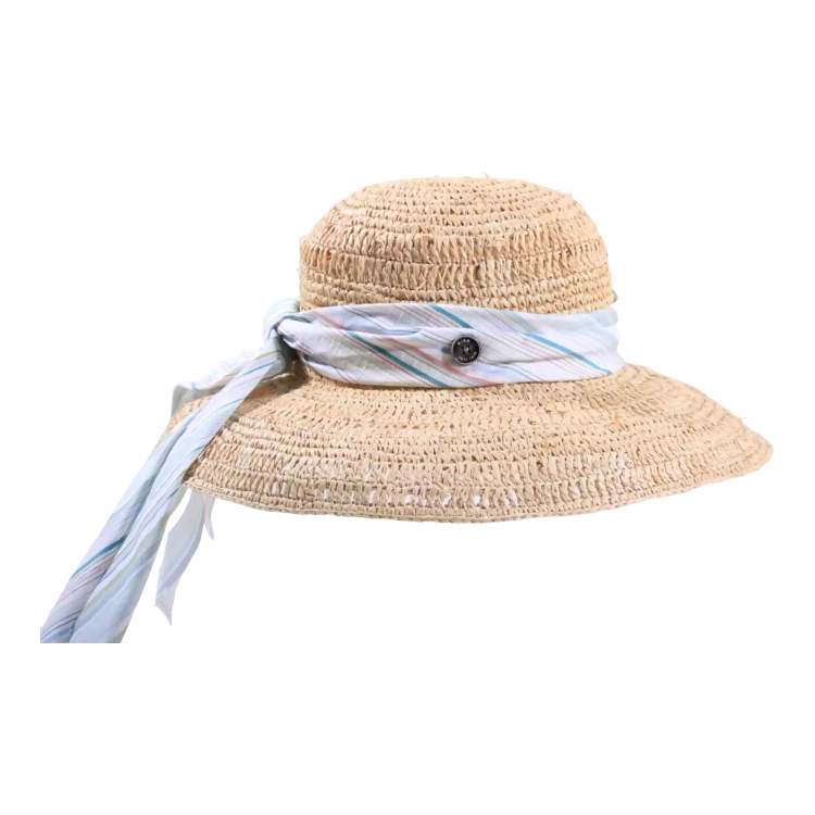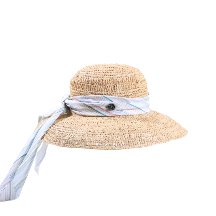 Der Damen Sommerhut Cloche Fresh Raffia ist die perfekte Liaison aus Natürlichkeit, Leichtigkeit und femininer Eleganz. Aus 100% feinstem Raffia gefertigt, überzeugt dieses Modell durch seine luftige Struktur und seine grazile Cloche-Form. Die weiche, breite Krempe verleiht nicht nur charmanten Retro-Flair, sondern bietet auch idealen Schutz an sonnigen Tagen. Ein besonderes Highlight: das mehrfarbig gestreifte Textilband, das lässig um die Krone gebunden ist und einen verspielten Sommerakzent setzt gekrönt vom traditionsreichen 1919 Qualitätsknopf.