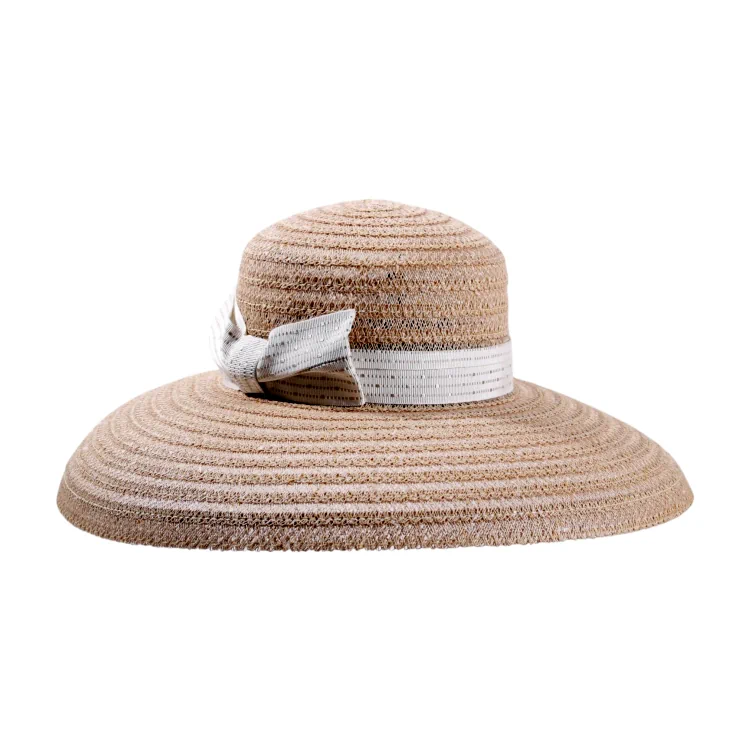 Die Hutform besticht durch eine sanft gerundete Krone von 10 cm Höhe, die eine klassische Eleganz ausstrahlt. Der weit geschwungene Rand mit 13 cm Breite sorgt für hervorragenden Sonnenschutz und verleiht dem Hut eine feminine, glamouröse Ausstrahlung.