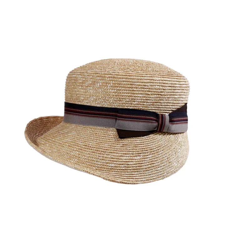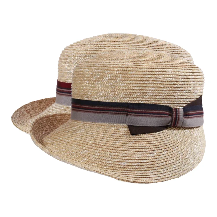 Gefertigt aus 100 % feinstem Weizenstroh, kombiniert der Haslerin handwerkliche Perfektion mit natürlicher Leichtigkeit. Das breite, gestreifte Rebsband mit dekorativer Schleife in warmen Farbtönen wahlweise in Bordeaux-Beige-Braun oder Marine-Beige-Braun setzt einen geschmackvollen Kontrast zur strohfarbenen Struktur und rundet das Design edel ab. Die großzügige Krempe (8.5 cm) spendet zuverlässig Schatten, während die moderate Kopfhöhe von 8 cm klassischen Komfort bietet.
