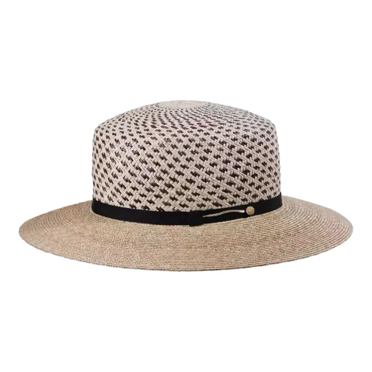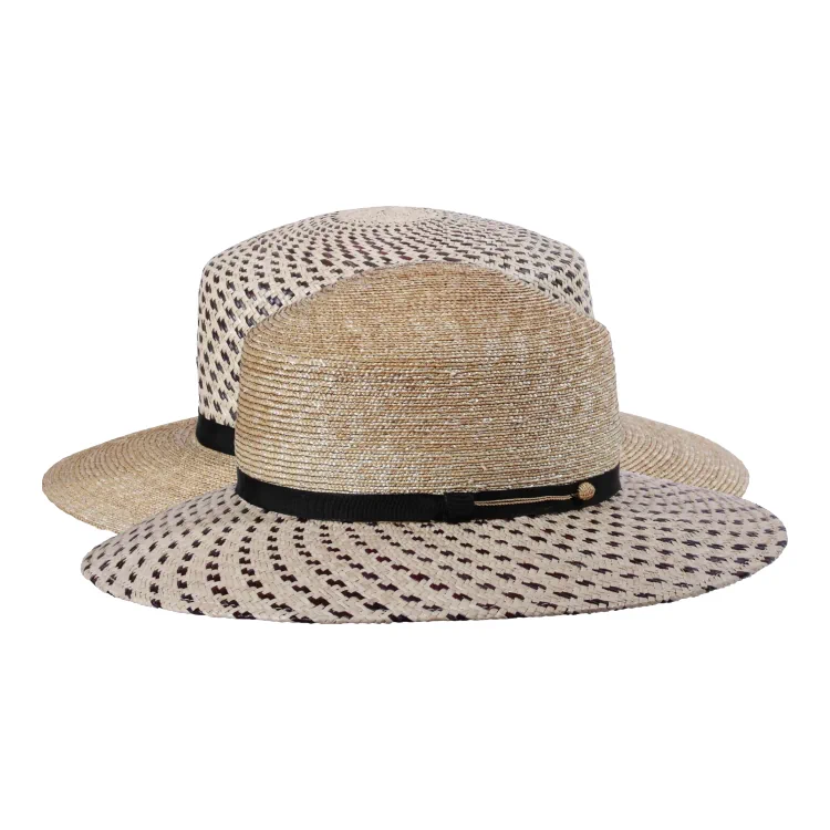 Dieser Damen Strohhut aus der Premium-Kollektion Freiamt Werderin vereint kunstvolles Design mit höchstem Anspruch an Handwerkskunst und Materialqualität. Das edle Zusammenspiel aus fein geflochtenem Weizenstroh und Panamastroh verleiht dem Modell eine strukturierte Zweifarbigkeit, die sowohl modern als auch traditionsbewusst wirkt. Die kontrastreiche Optik in Schwarz-Weiss oder Nature-Schwarz setzt stilvolle Akzente perfekt ergänzt durch das schmale schwarze Rebsband mit dezentem Strohelement.