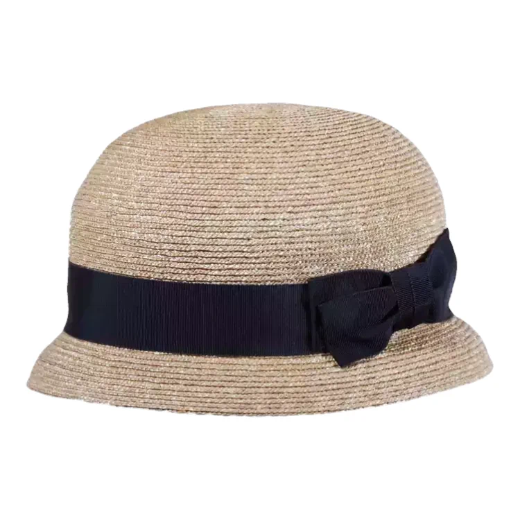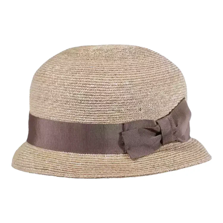 Mit seiner charmanten Glockenform und dem zarten Glanz des geflochtenen Strohs ist dieser Damenhut ein Inbegriff klassischer Sommer-Eleganz. Die sanft abfallende Krempe bietet stilvollen Schutz vor Sonne, während das farblich abgestimmte Rebsband mit femininer Schlaufe für modische Raffinesse sorgt.