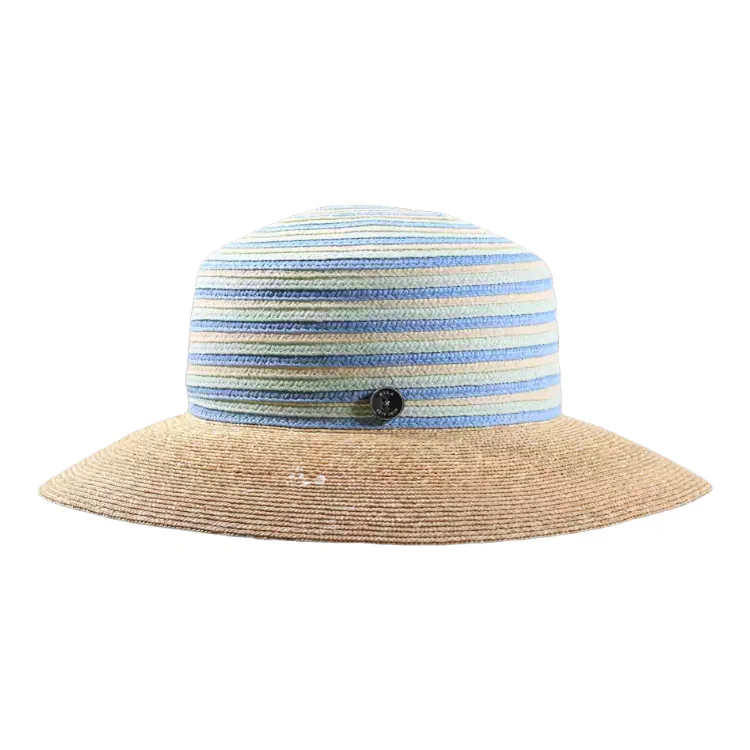 Das fein geflochtene Material aus 50?% Viskose und 50?% Weizenstroh sorgt für angenehme Leichtigkeit und gute Formstabilität. Der charmante Streifenmix in zarten Himmelblau- und Naturtönen verleiht dem Modell seinen unverwechselbaren Charakter. Der ikonische Risa seit 1919-Qualitätsknopf an der Seite rundet den Look edel und authentisch ab.