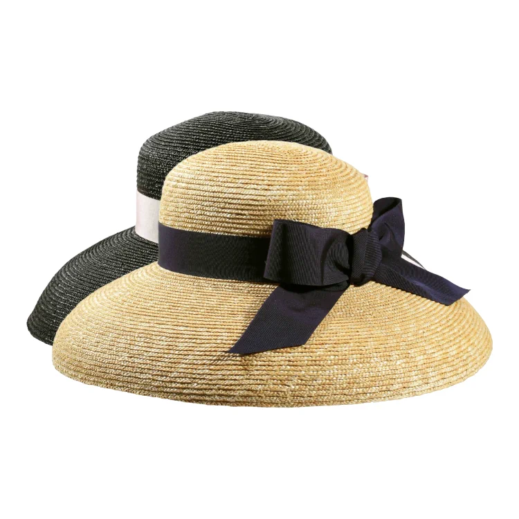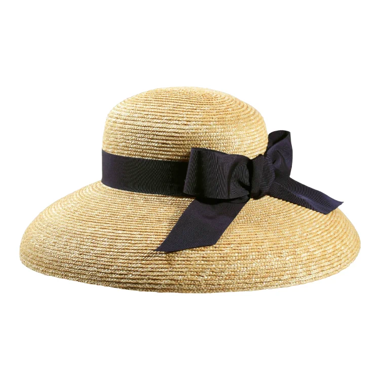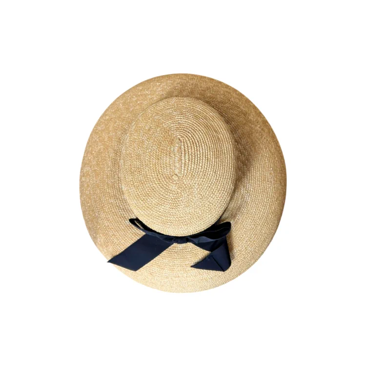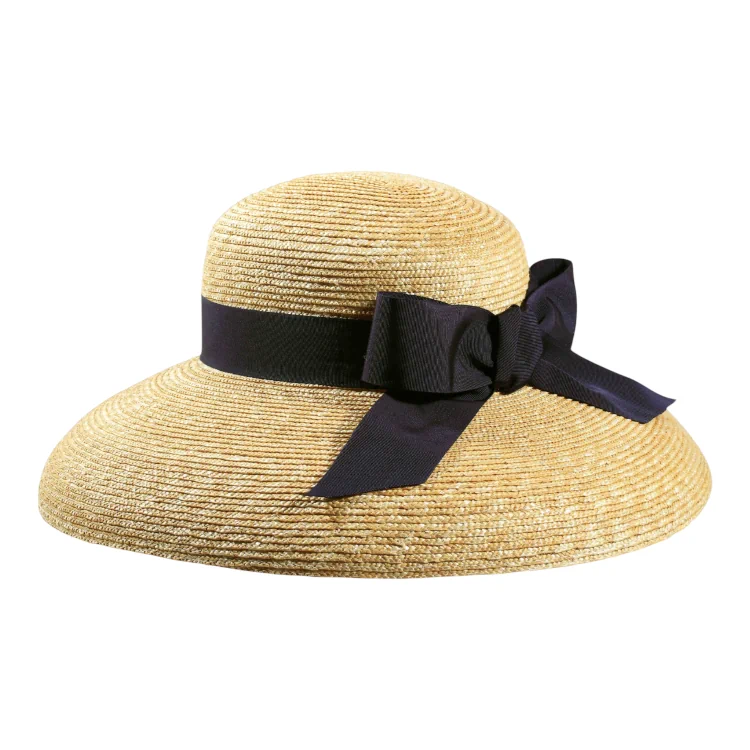 Fein gewobene Strohbahnen werden kunstvoll zu einer harmonischen Hutform verarbeitet. Die breite Krempe ist leicht geschwungen und verleiht dem Gesicht einen sanften Rahmen ein subtiler Schutz vor Sonne mit maximalem Stilfaktor. Die zarte Schleife hinten setzt ein verspieltes, aber dennoch raffiniertes Detail.