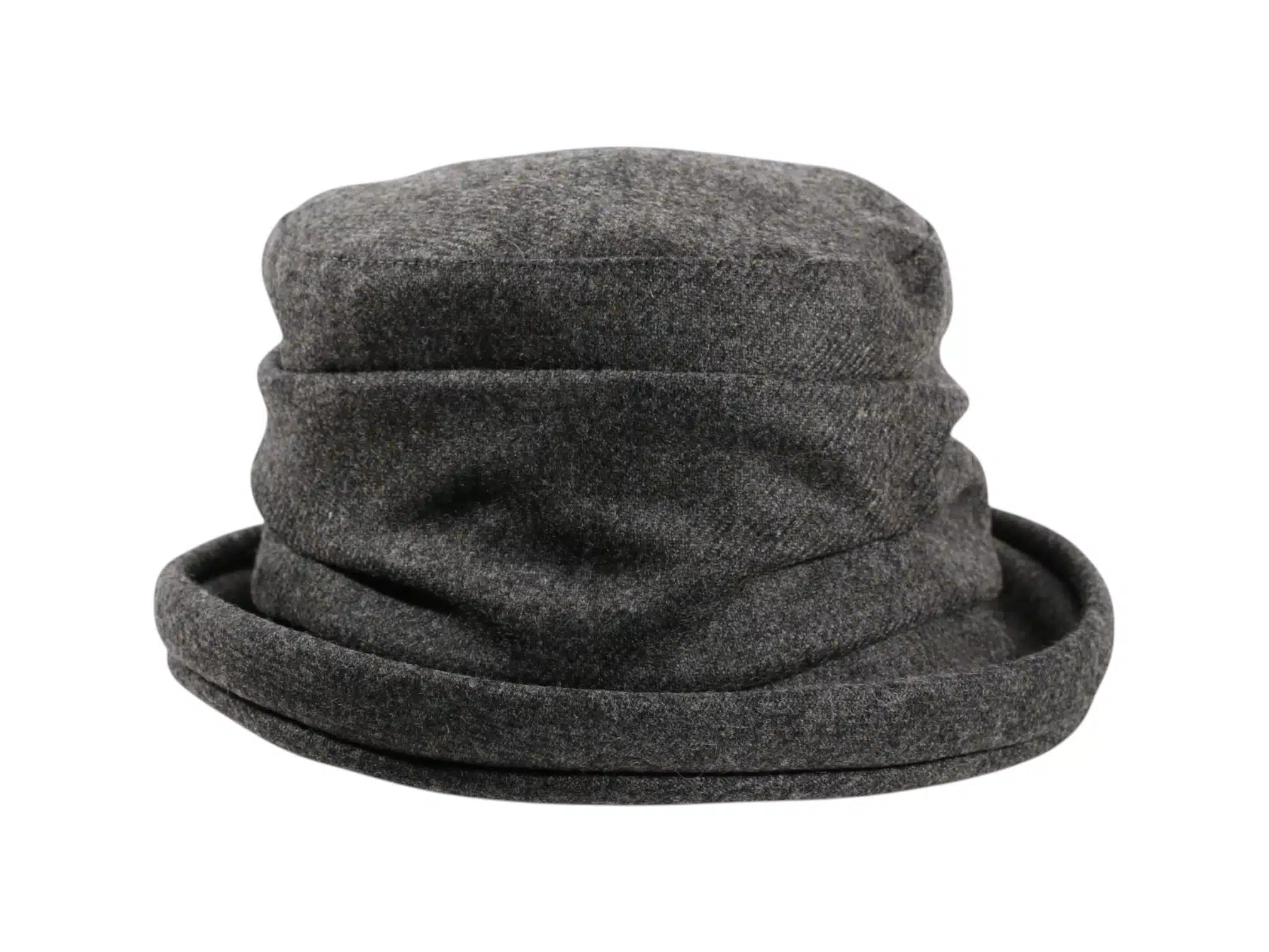 Die leicht geraffte Form mit dekorativer Rollkante verleiht der Mütze eine feminine Note, während das feine Webmuster in der Farbe Anthrazit dezente Eleganz versprüht. Ein Accessoire, das Wärme spendet und zugleich als modisches Statement überzeugt.