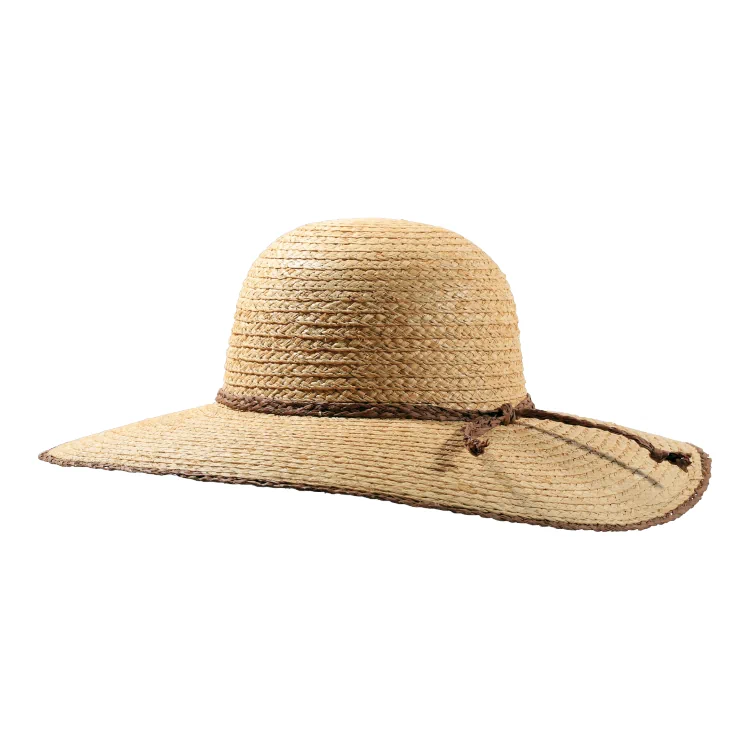 Der Damen Sommerhut Raffia wird sorgfältig aus geflochtenem Raffia gefertigt, dessen strukturierte Oberfläche seine Natürlichkeit unterstreicht. Das Raffia-Hutband in Kontrastfarbe ist mit Liebe zum Detail eingeflochten und sorgt für ein stimmiges Gesamtbild.