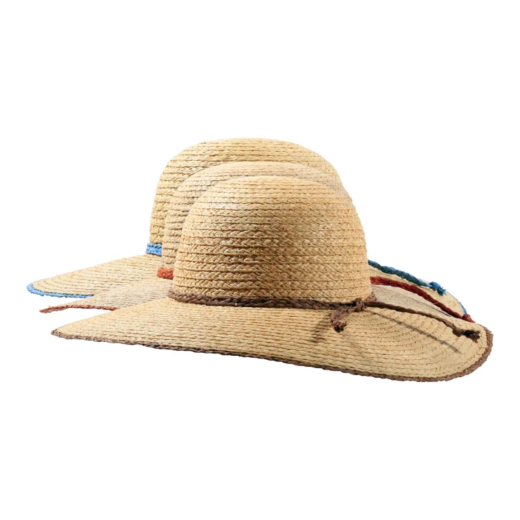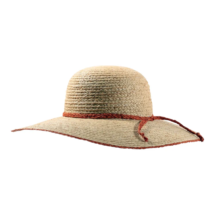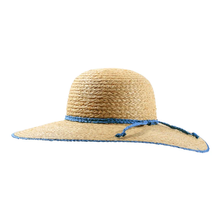 Raffia ist ein natürliches, umweltfreundliches Material, das biologisch abbaubar ist. Die Fertigung in Europa unter fairen Bedingungen und mit kurzen Lieferwegen unterstreicht den Nachhaltigkeitsanspruch dieses Sommerhutes.