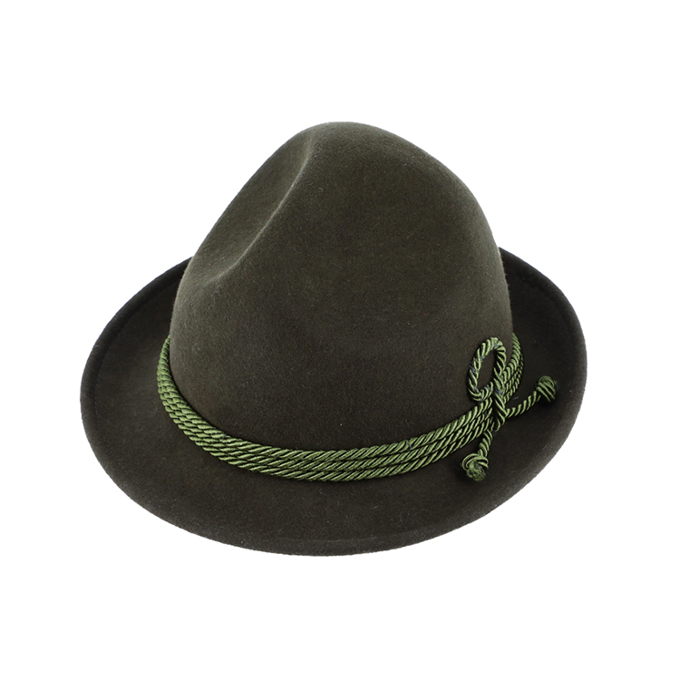 Dreispitz Wollfilzhut shiny green mit dreilagiger Kordel