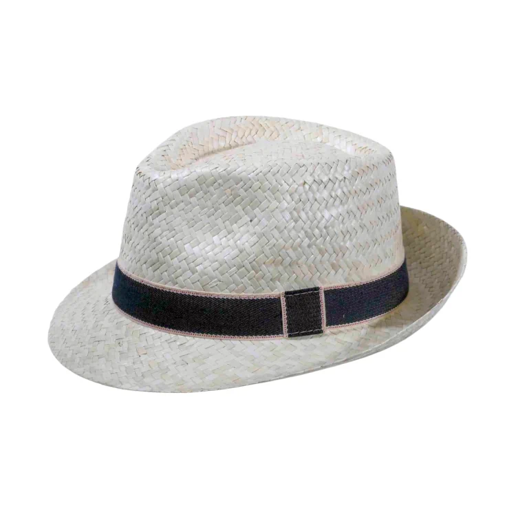 Die klassische Fedora-Form sorgt für eine zeitlose Silhouette, die sowohl zu legerer als auch gehobener Kleidung passt. Besonders auffällig: die aufwendig eingefasste Garnitur mit Passepoil und Traverse, die das Design unterstreicht. Die Strohbasis ist fein geflochten und besitzt einen leichten Schimmer das Ergebnis gekonnter Handarbeit.
