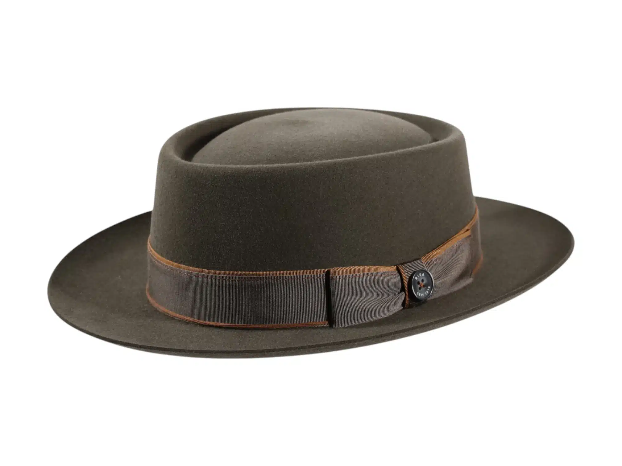 Die Garnitur besteht aus einem edlen Rebsband mit Paspel und Garn, ergänzt durch den ikonischen Qualitätsknopf „Risa seit 1919“ – ein echtes Erkennungszeichen für Schweizer Huttradition.