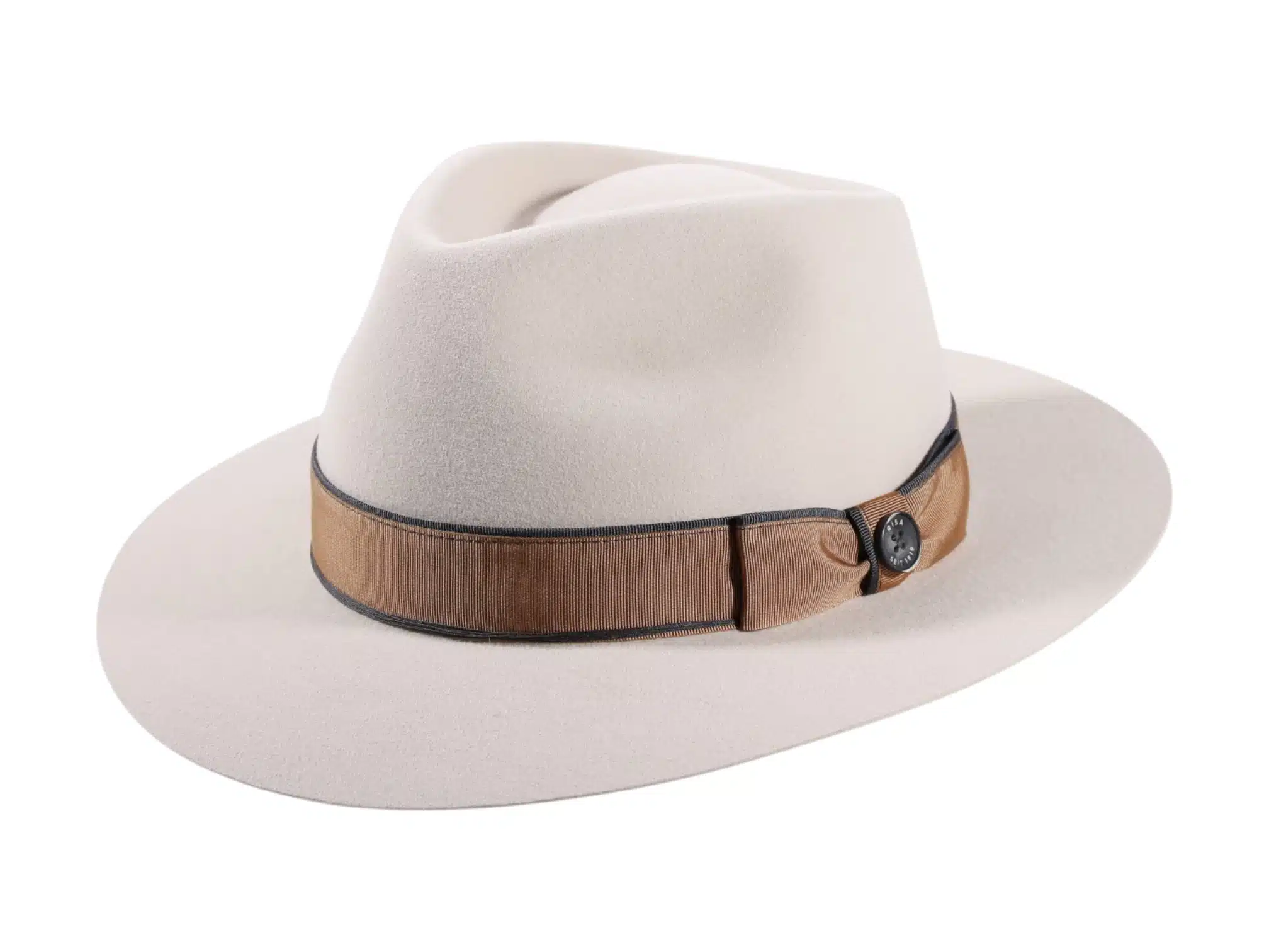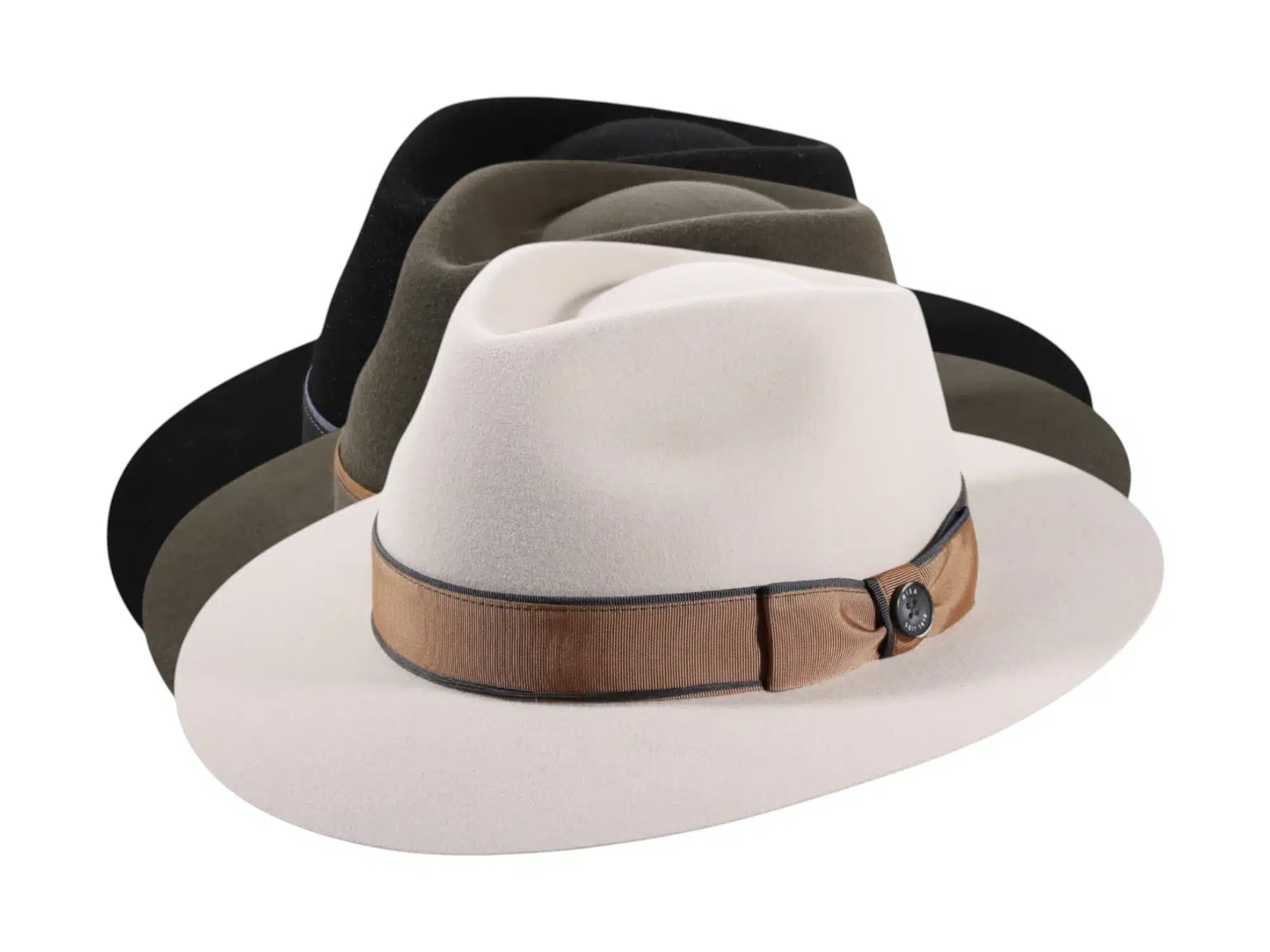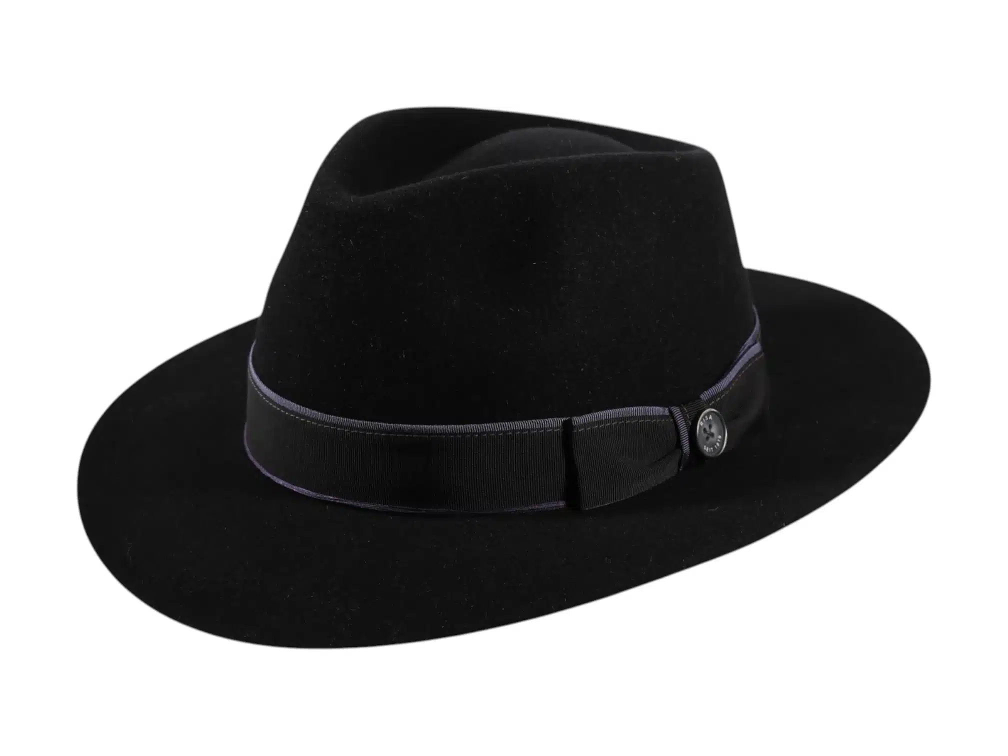 Aus 100% hochwertigem Haarfilz gefertigt, überzeugt dieses Modell durch seine exzellente Formstabilität, luxuriöse Haptik und Langlebigkeit. Mit einer Randbreite von 6.5 cm und einer Kopfhöhe von 10.5 cm bietet er die ideale Balance aus Eleganz und Schutz.