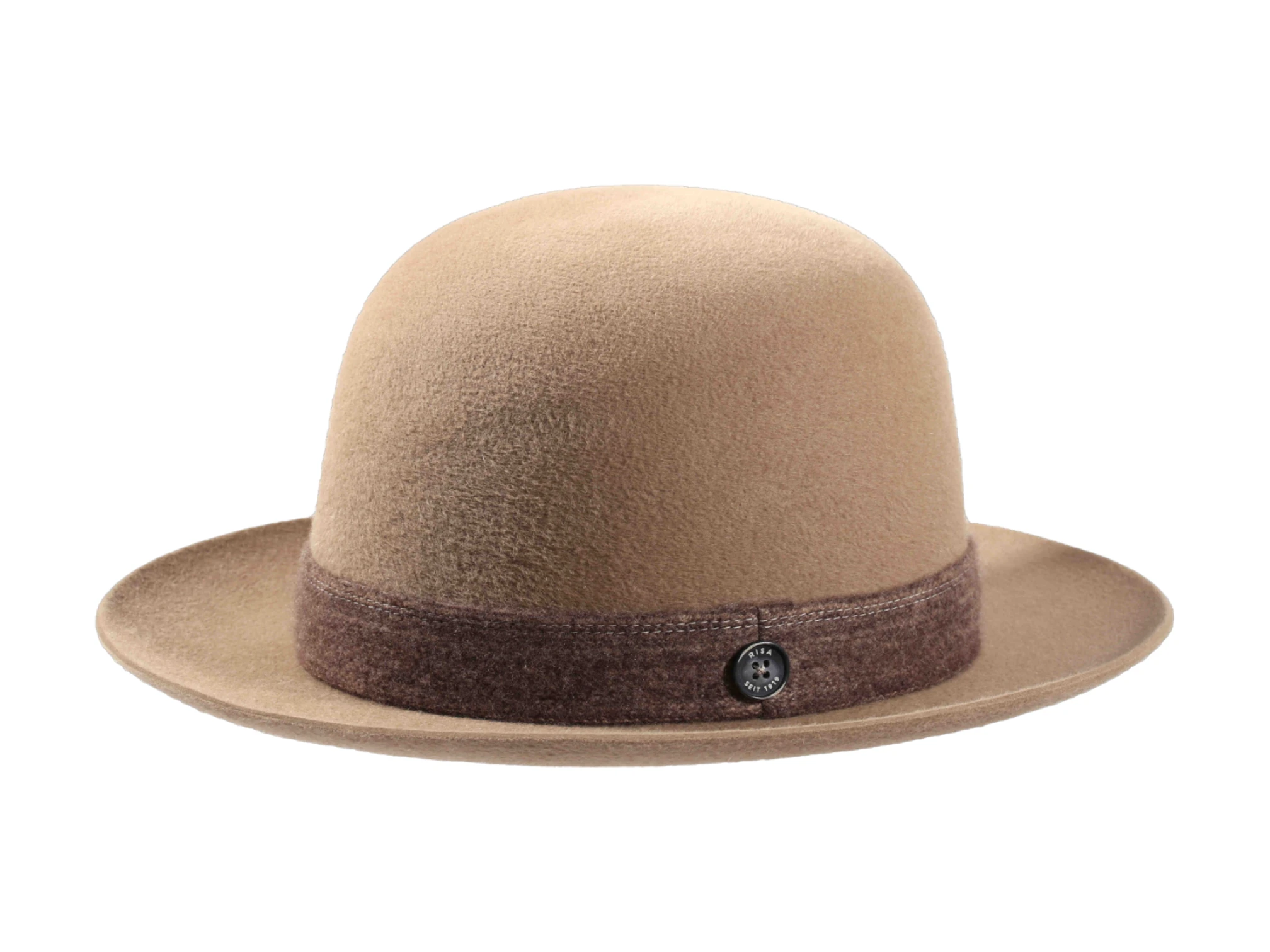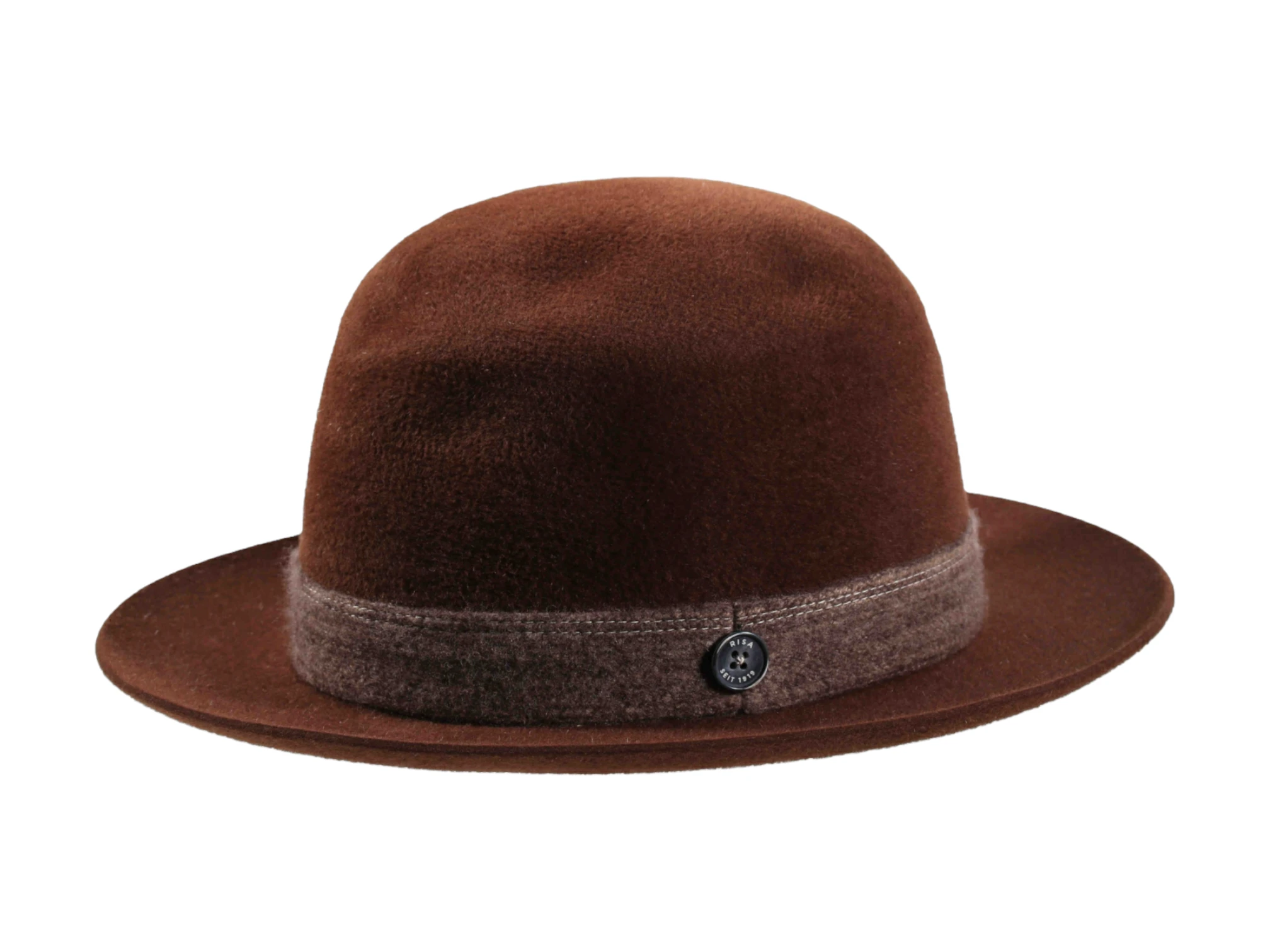 Gefertigt aus 100% edlem Haarfilz-Velours, präsentiert sich dieser Hut in drei Farbvarianten: warmes Beige, erdiges Kakao und stilvolles Khaki. Das aufgeraute Wollband „Folly“ mit dekorativer Traverse und dem ikonischen „Risa seit 1919“-Knopf betont die luxuriöse Handarbeit und setzt ein diskretes, aber elegantes Detail. Mit seiner 6,5 cm breiten Krempe und einer Kopfhöhe von ca. 10 cm bietet er sowohl Schutz als auch modische Präsenz.