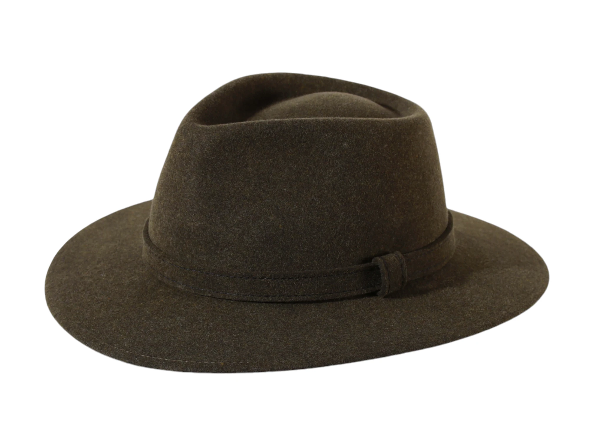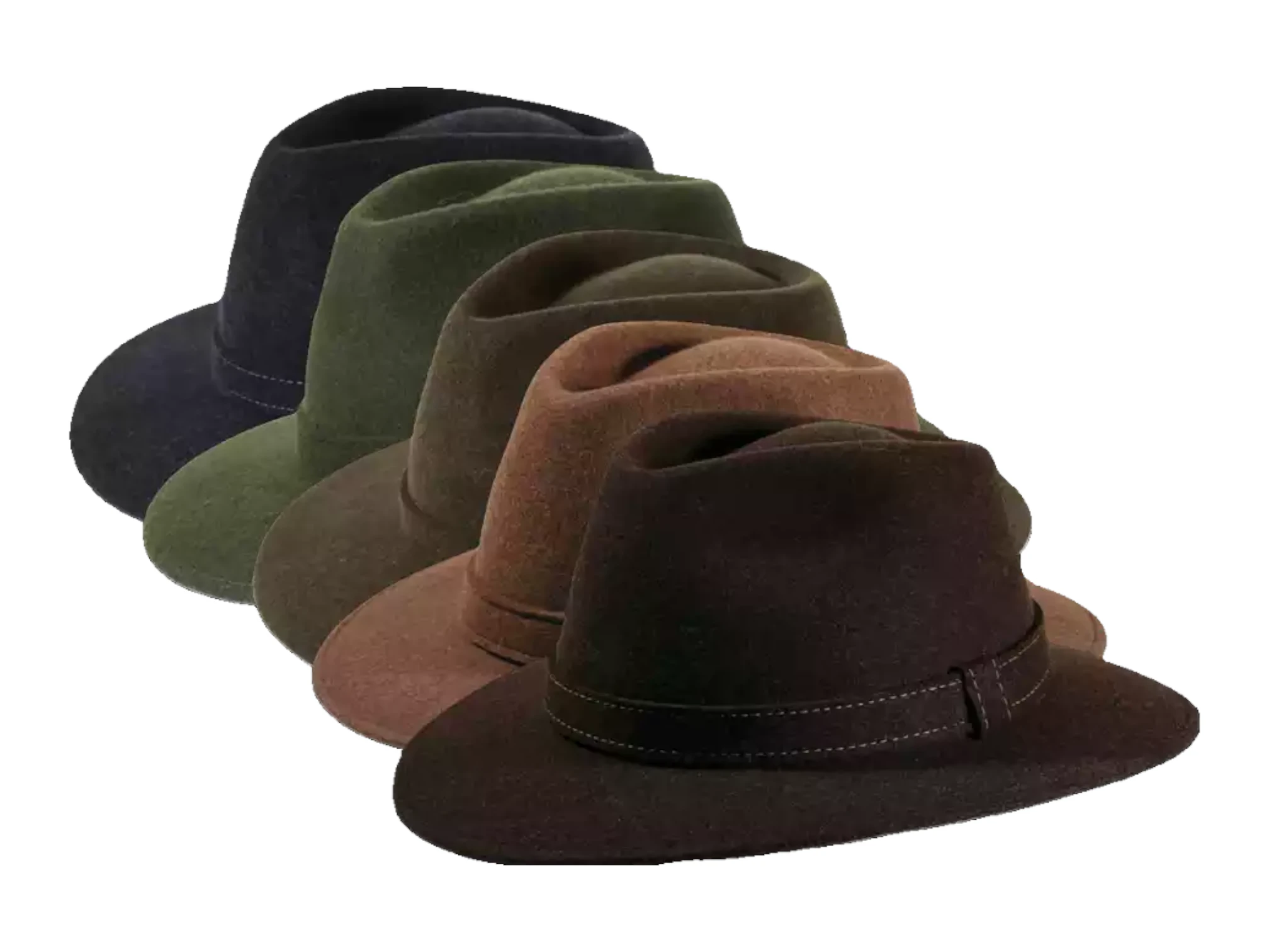 Der Hut ist in den Farben Dunkelgrau, Olive, Mittelgrün, Camel und Dunkelbraun verfügbar.