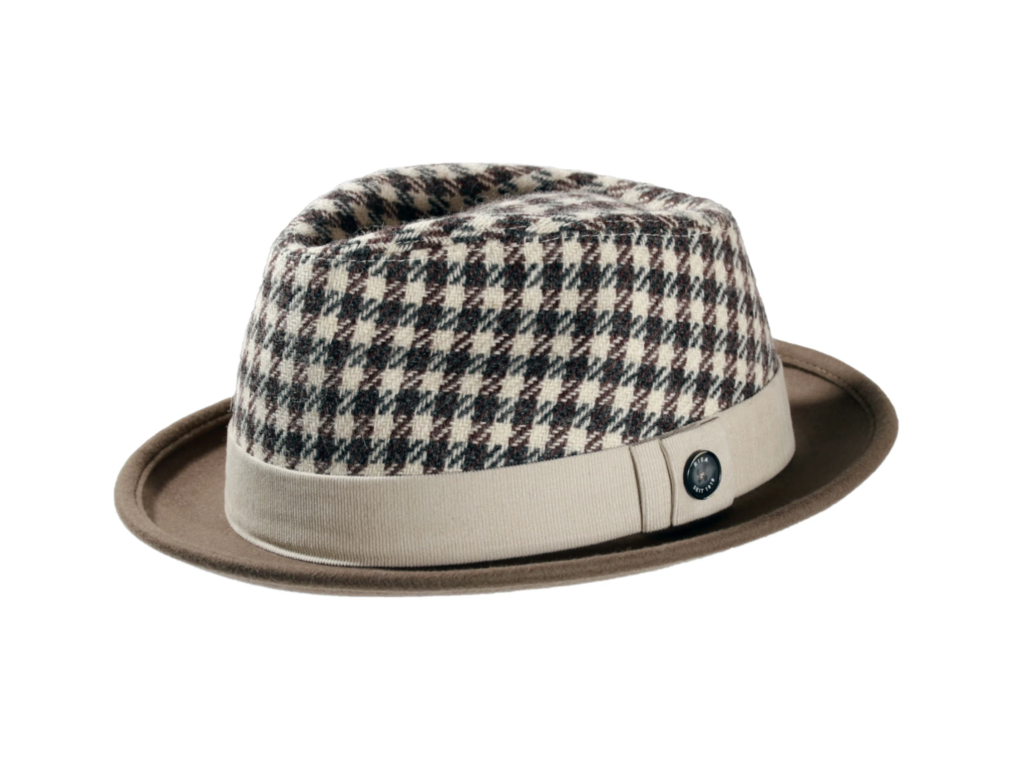 Der Trilby Filzhut mit Irish Wool vereint moderne Eleganz mit traditioneller Handwerkskunst. Hergestellt aus 100% Wollfilz, besticht der Hut durch seine besondere Materialkombination: Der Hutkopf besteht aus Cordstoff mit einem feinen Hahnentrittmuster in Hellbeige und Anthrazit, während der Hutrand in einem stilvollen Nougat Uni gehalten ist. Mit einer Randbreite von 4 cm und einer Kopfhöhe von 10,5 cm sorgt der Trilby für eine elegante Silhouette und unterstreicht Ihren individuellen Stil.