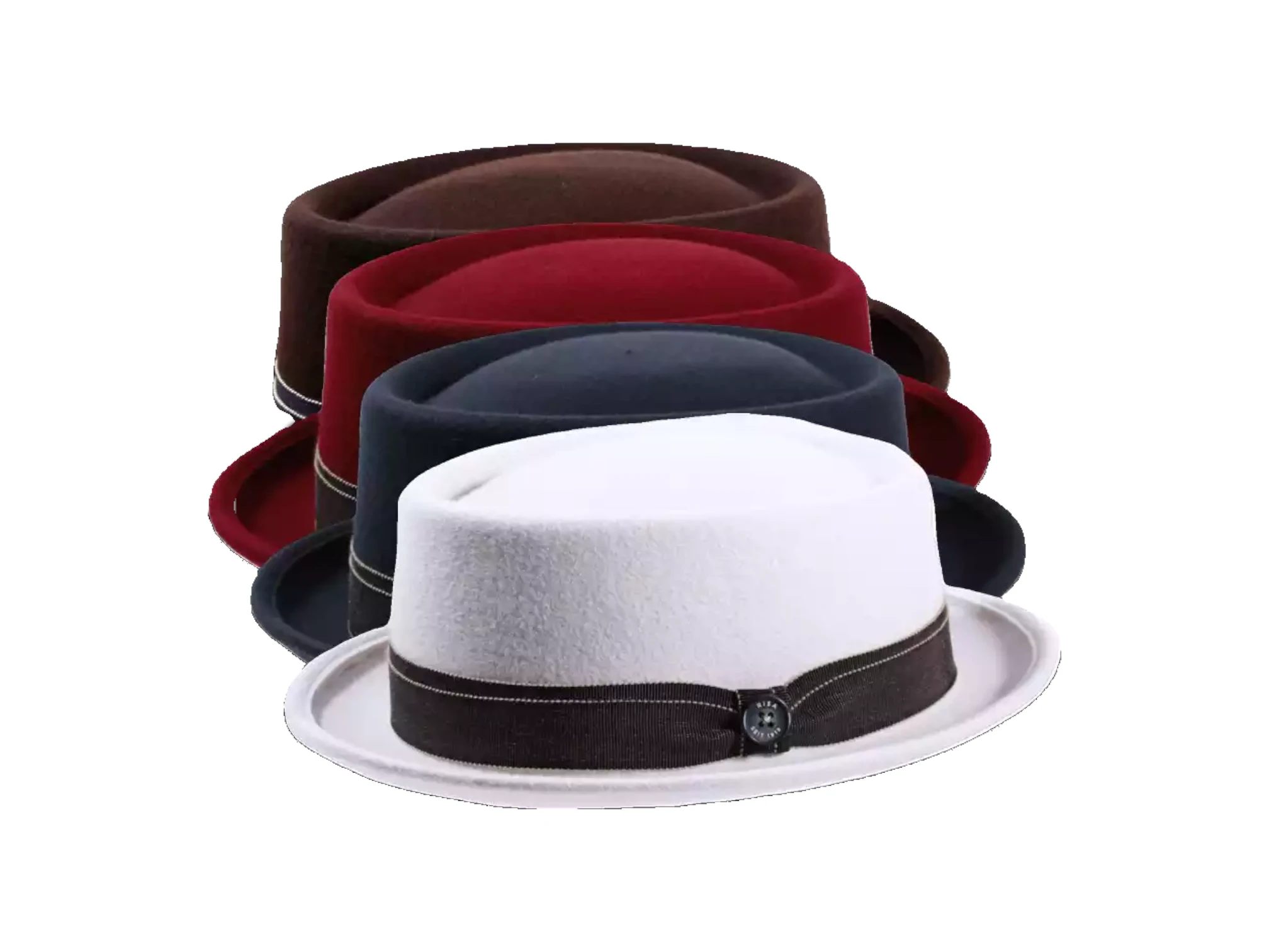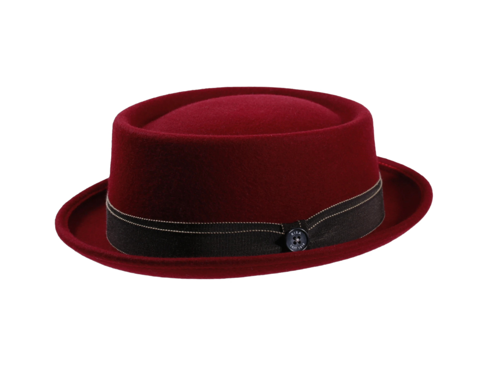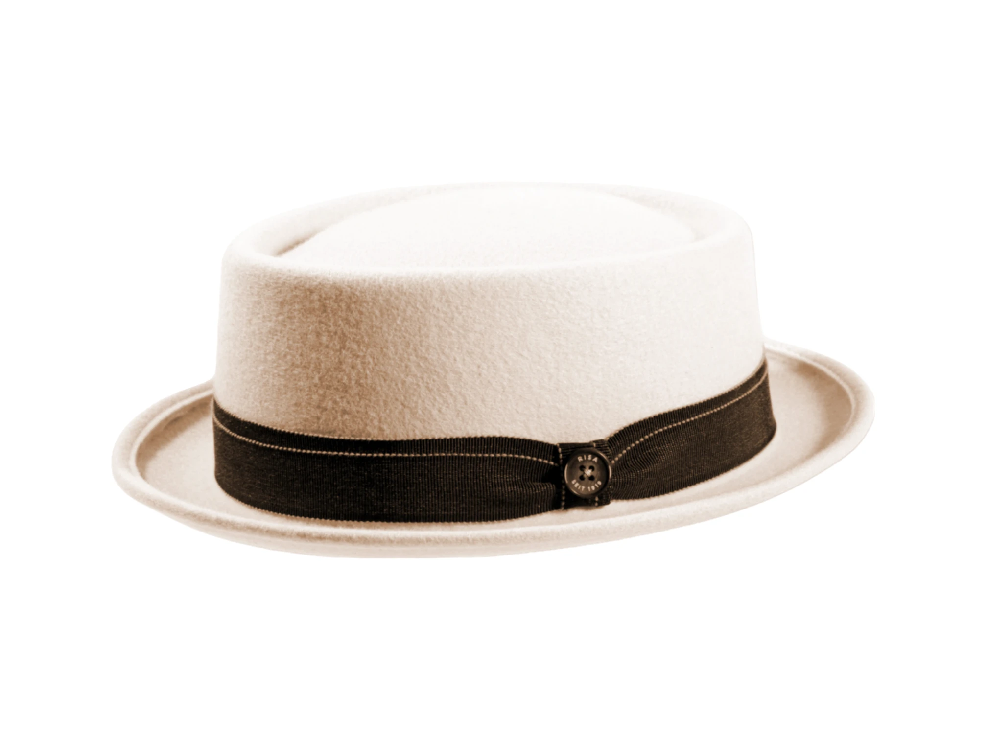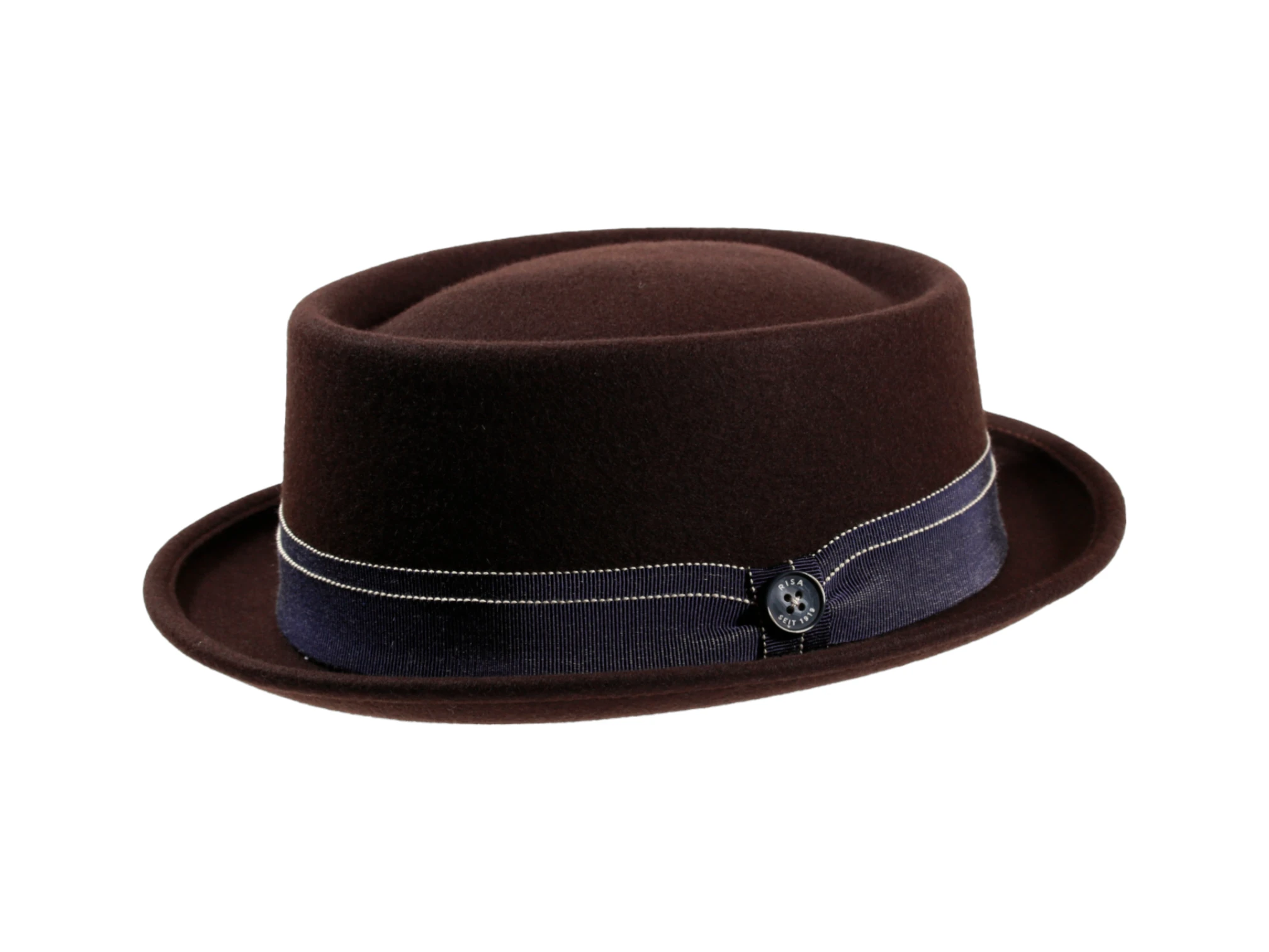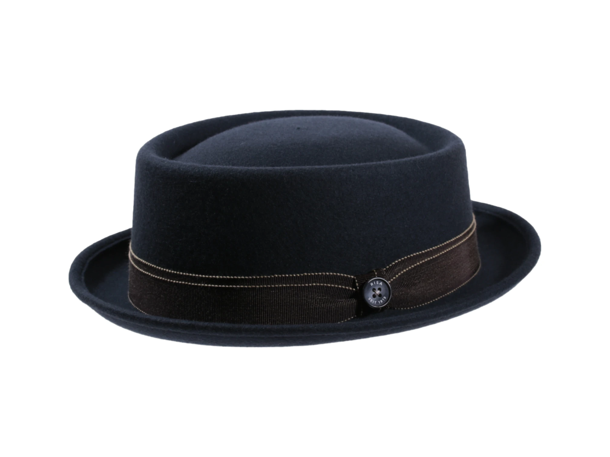 - Dieser Hut besticht durch seine markante Porkpie-Form und das edle Grosgrain-Hutband. Hergestellt aus 100 % Wollfilz, kombiniert er Komfort mit zeitloser Eleganz.