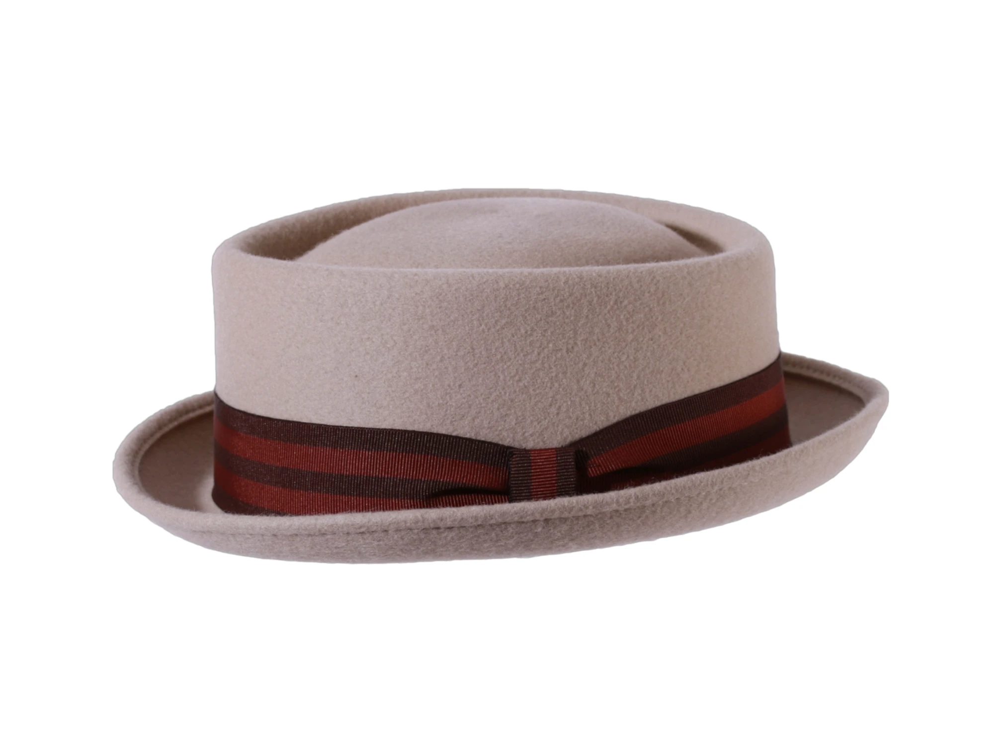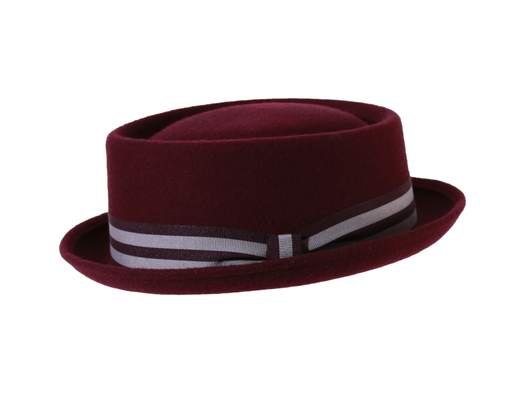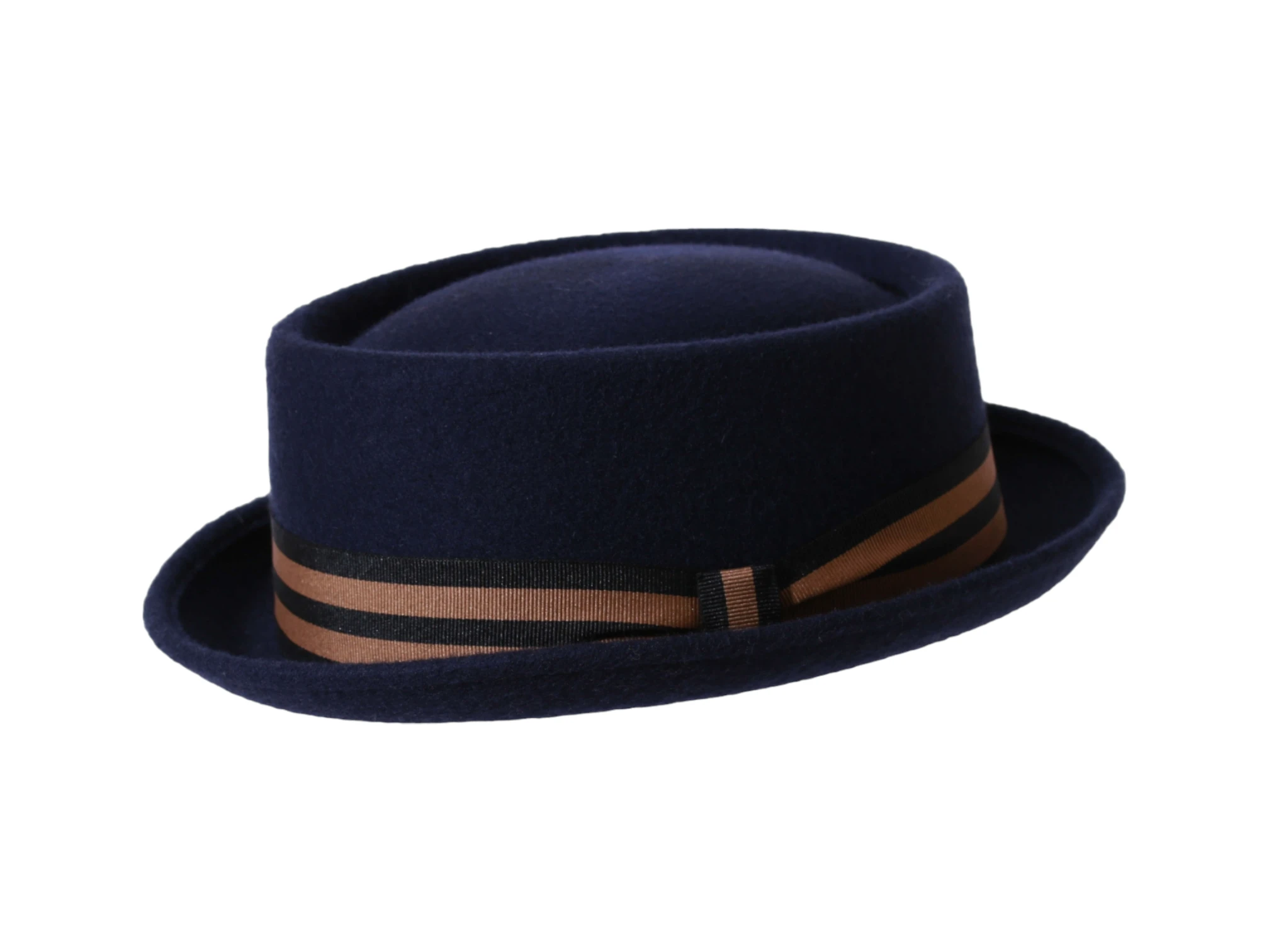 - Dieser Hut kombiniert das klassische Porkpie-Design mit einer modernen, gestreiften Rebsband-Garnitur. Gefertigt aus 100 % Wollfilz, bietet er zeitlose Eleganz und höchsten Tragekomfort.