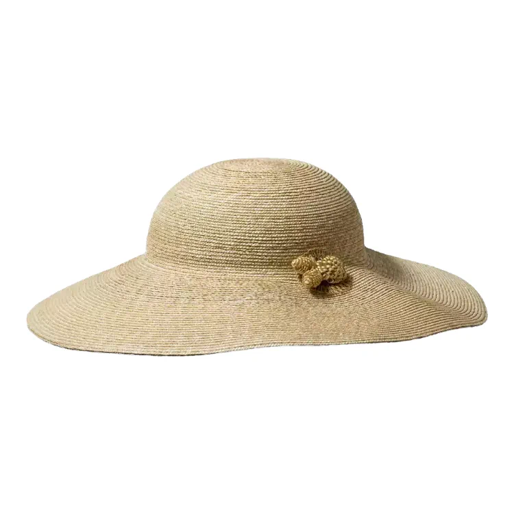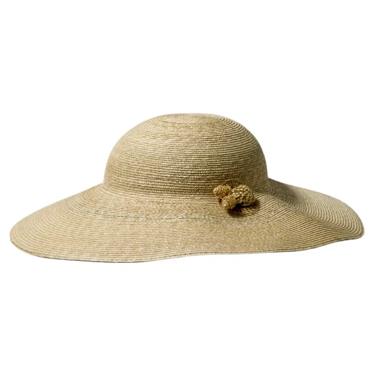 Gefertigt aus 100% naturbelassenem Stroh, vereint dieser Hut Leichtigkeit, Atmungsaktivität und langlebige Stabilität. Die großzügige Krempe mit 11,5 cm Breite sorgt nicht nur für elegantes Volumen, sondern auch für exzellenten UV-Schutz an heißen Tagen. Die runde Krone mit 8 cm Höhe passt sich harmonisch an und schmeichelt jeder Gesichtsform. Die ikonische, handgefertigte Strohblume verleiht dem Modell seine unvergleichliche feminine Note.