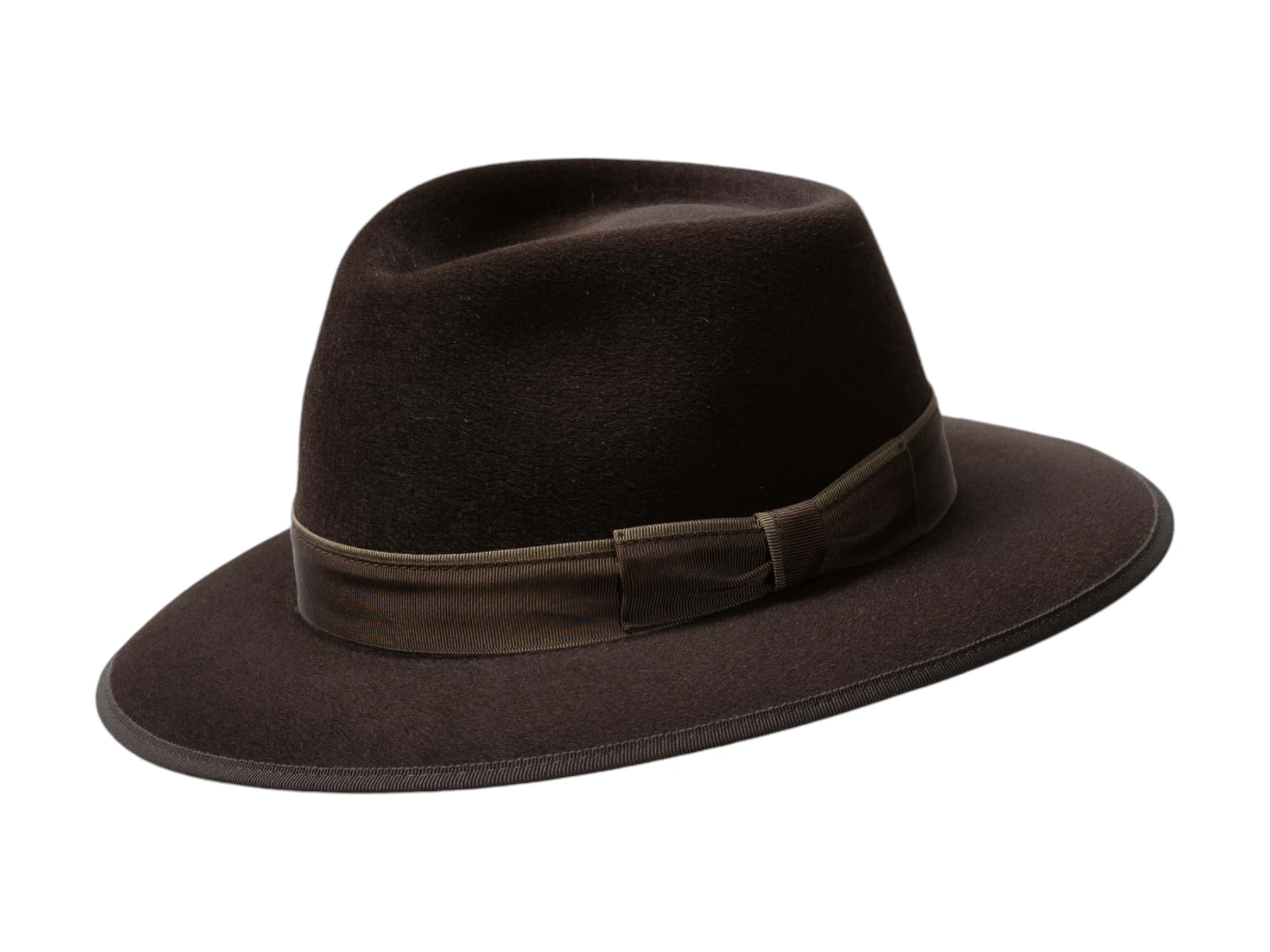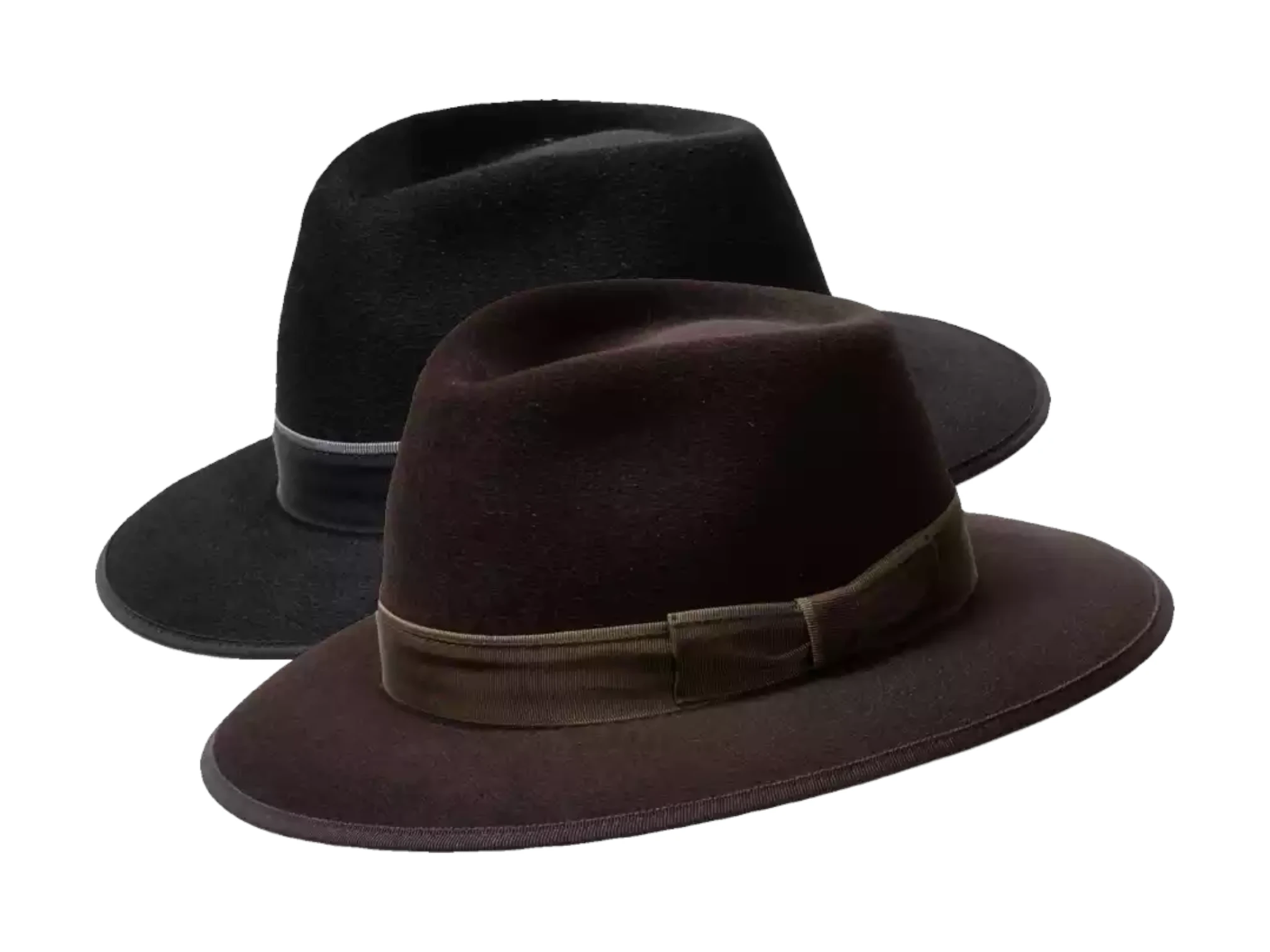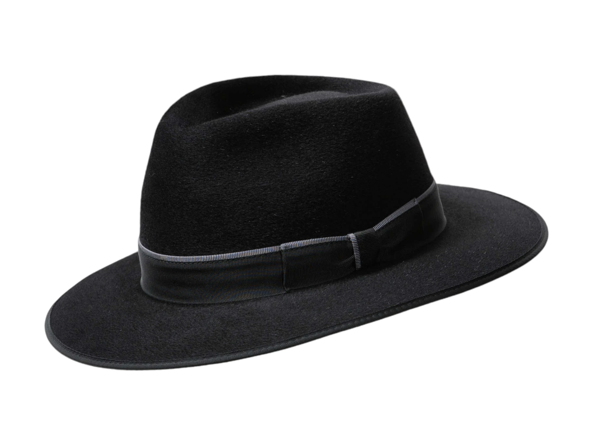 Dieser elegante Hut kombiniert klassische Handwerkskunst und modernes Design. Hergestellt aus feinstem Haarfilz, zeichnet sich der Hut durch eine Randbreite von 7 cm und eine Kopfhöhe von 11 cm aus, was ihm seine markante und zugleich stilvolle Silhouette verleiht. Das Hutband aus hochwertigem Rebs mit einem feinen Passepoil, kombiniert mit der edlen Schleife, verleiht dem Hut seine besondere Raffinesse. Der Hut ist in zwei Farbvarianten erhältlich: tiefes Schwarz mit grauem Akzent oder edles Dunkelbraun mit hellbraunem Detail.