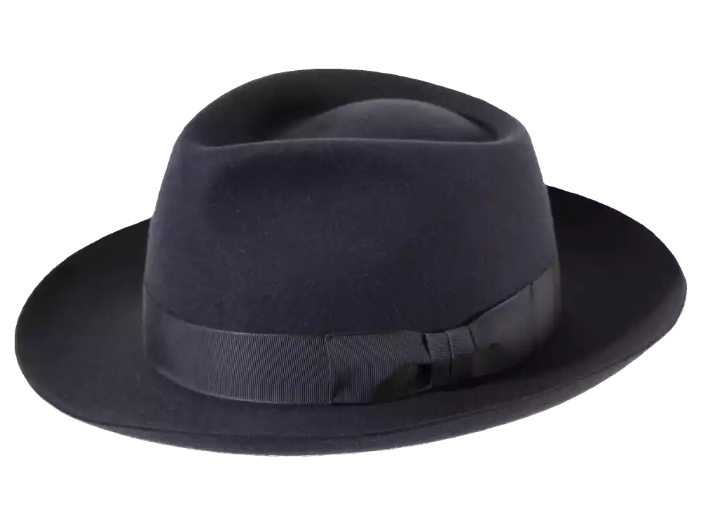 Experimentieren Sie mit verschiedenen Positionen der Krempe, um den Look zu gestalten, der am besten zu Ihrem Stil und Anlass passt. Ein leicht geneigter Klapprand nach unten (Bogart Stlye) kann eine lässige Eleganz vermitteln, während ein nach oben ausgerichteter Klapprand (Fedora) eine formellere Note hinzufügt. Der Fedora/Bogart aus 100% Haarfilz verkörpert zeitlose Eleganz und ist ideal für alle, die Stil und Qualität zu schätzen wissen. Die breite Krempe und die hohe Krone verleihen dem Hut eine markante, stilvolle Silhouette, die an klassische Hollywood-Ikonen erinnert. Erhältlich in den Farben Kakao mit passendem oder marineblauem Hutband sowie in elegantem Dunkelgrau, bietet dieser Hut vielseitige Styling-Möglichkeiten für anspruchsvolle Träger.