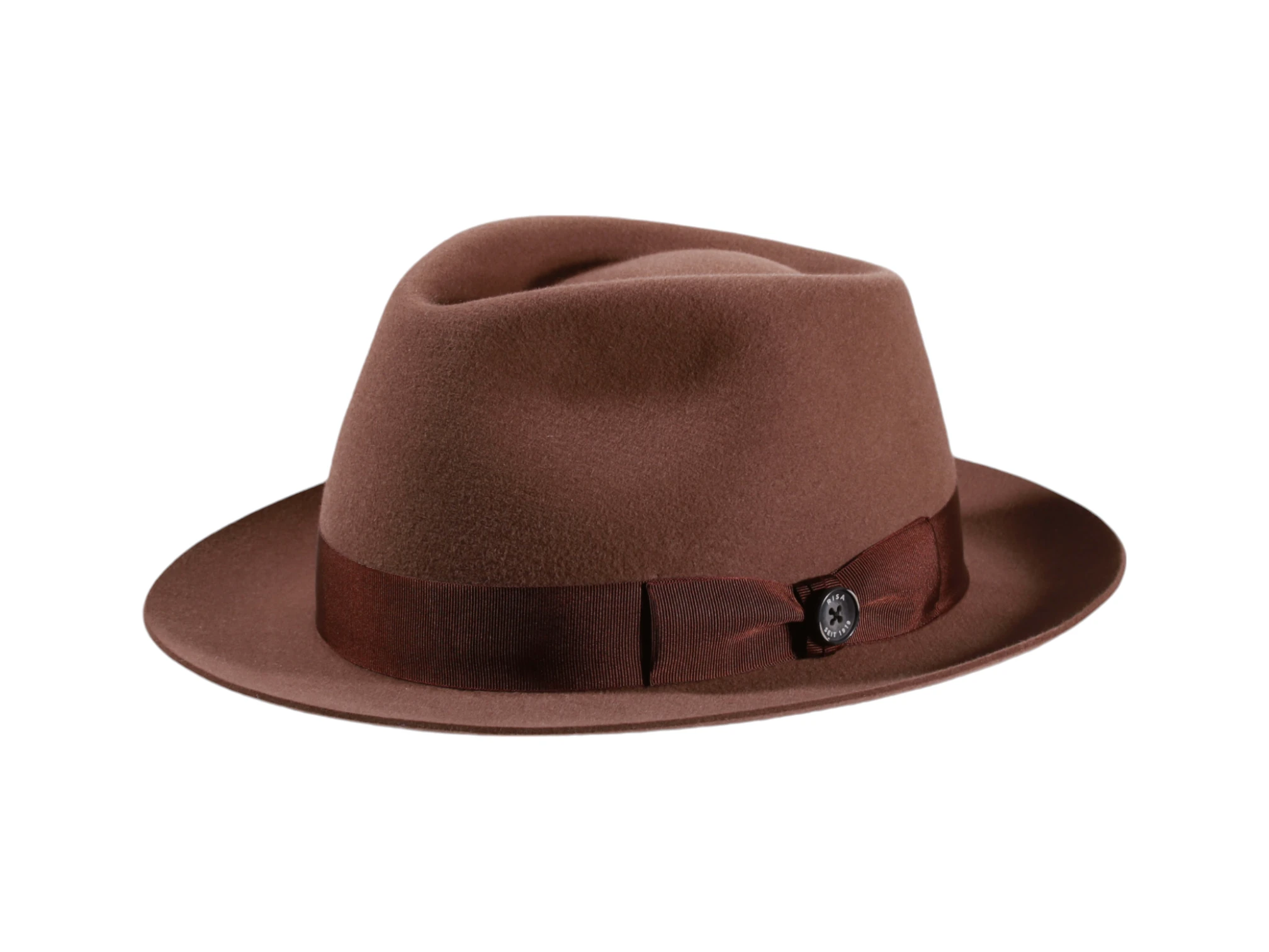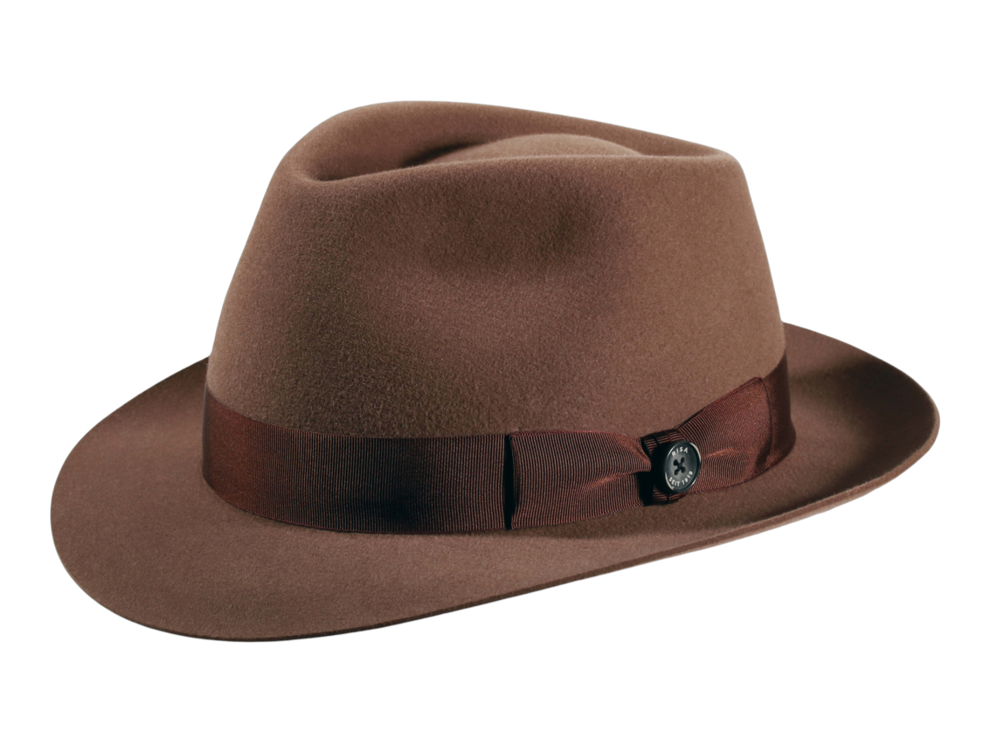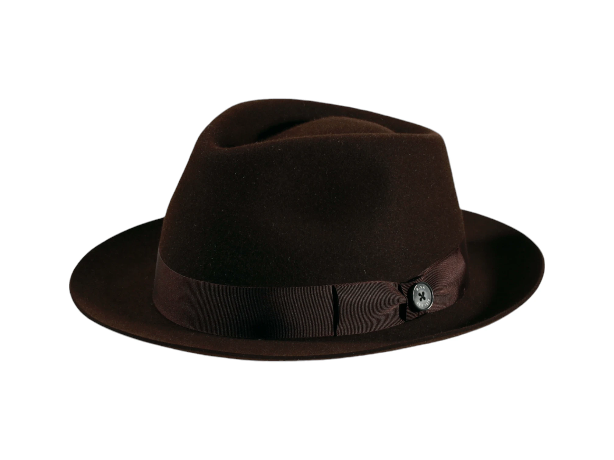 Die Garnitur aus Ripsband mit Masche und dem “1919 Knopf als Qualitätssiegel” rundet das Design stilvoll ab. Jedes Exemplar wird in der renommierten Schweizer Hutmanufaktur Risa individuell auf Bestellung gefertigt. Die Herstellung dauert 10 bis 15 Arbeitstage, wobei jedes Detail sorgfältig von Hand ausgeführt wird. Das sauber eingenähte Textilinnenband sorgt zudem für höchsten Tragekomfort.