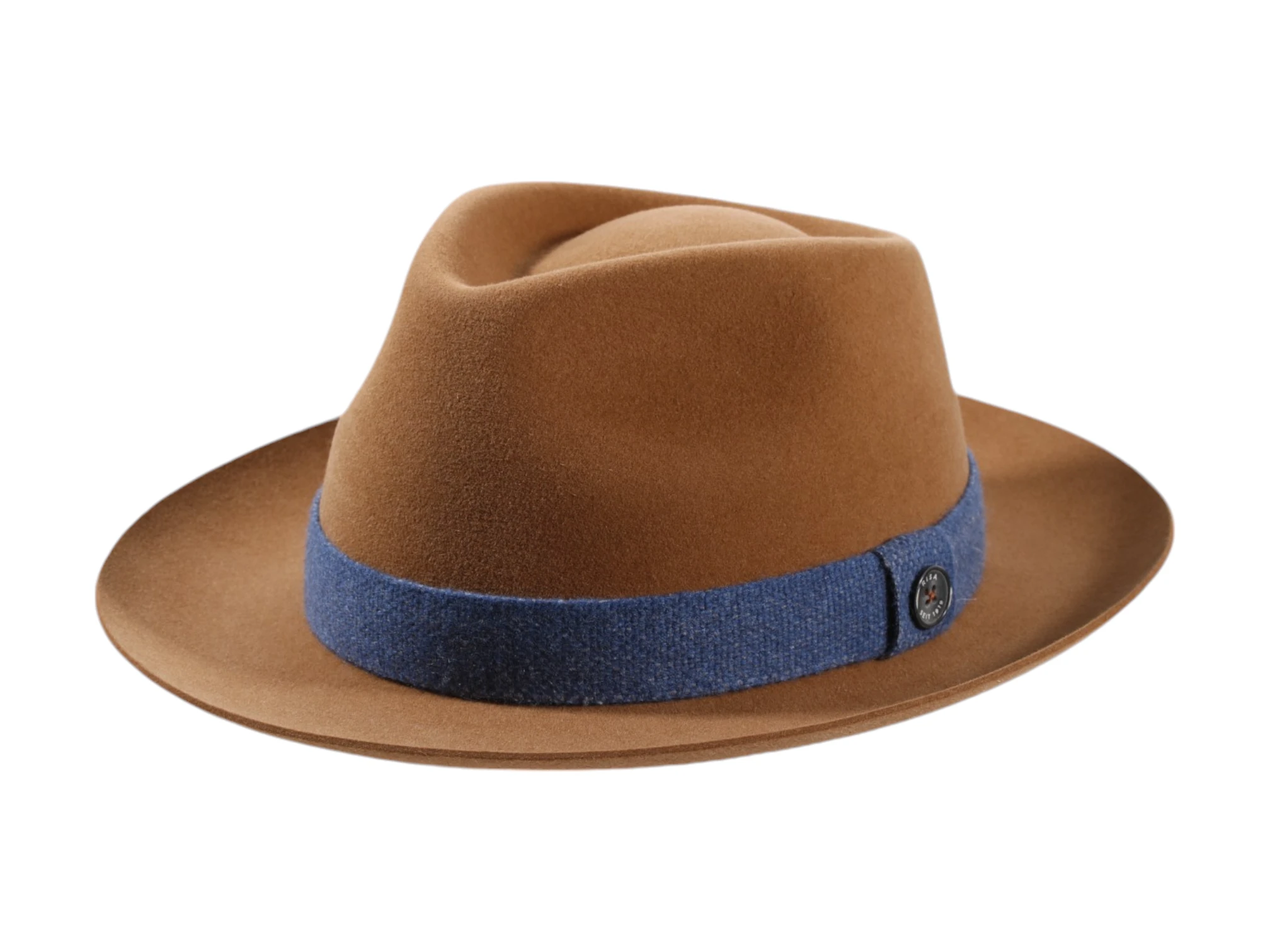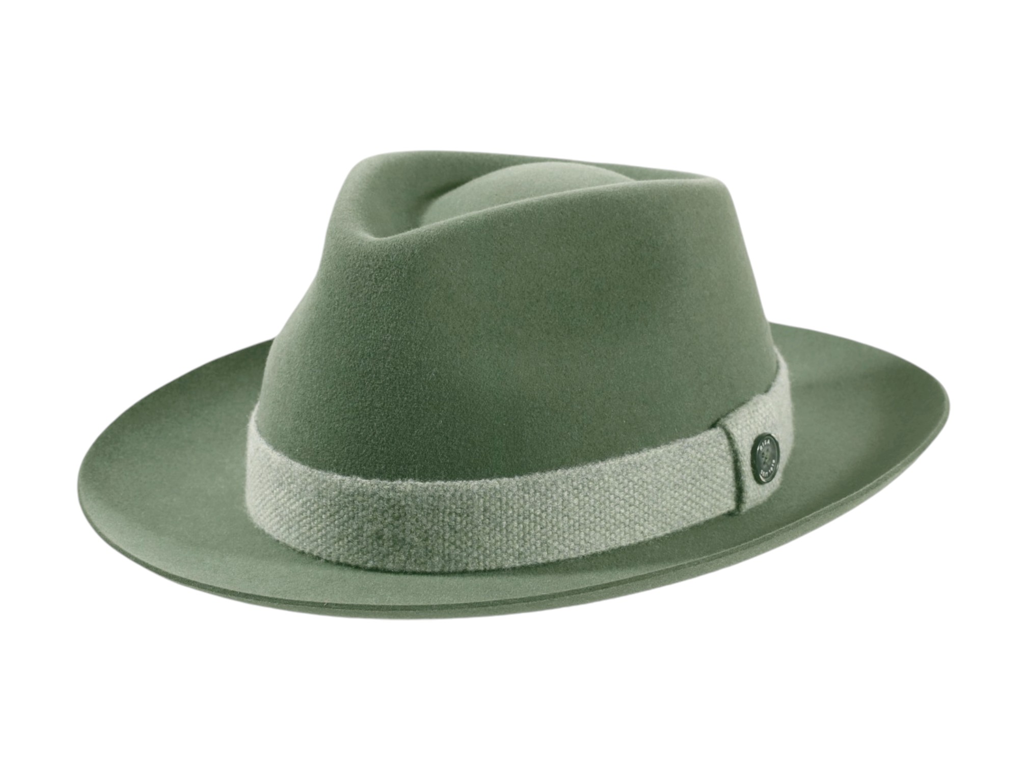 Gefertigt aus luxuriösem 100% Haarfilz Velours vereint er zeitlose Eleganz, modische Vielseitigkeit und höchste Schweizer Handwerkskunst.