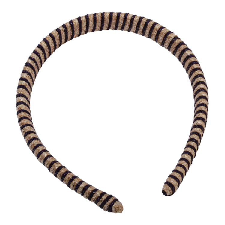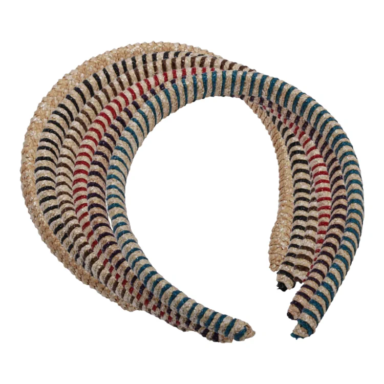 Ein aufregendes Haar-Styling-Accessoires aus geflochtenem Weizenstroh/Pedaline für die modebewusste Dame. Dieser äusserst hochwertige und schöne Haarschmuck in der Form eines geflochtenen Haarreif wird aus so genanntem Weizenstroh- und Pedaline Borden geflochten und Zusammengenäht. Die Bremgarter Schlaufe liegt für Haarschmuck in sieben exklusiven Farbzusammenstellungen in der Form eines Seils das sich um den Reiff windet vor.