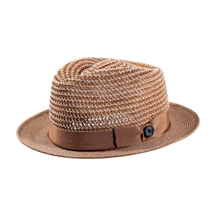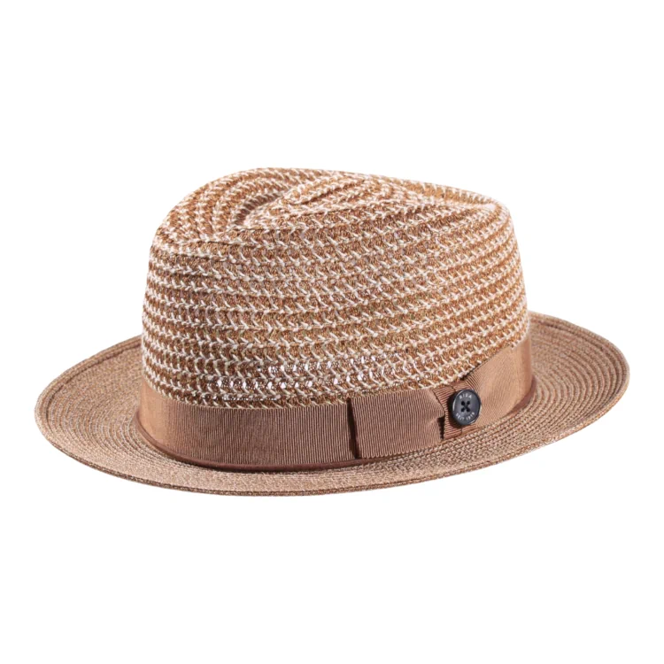 Dieser handgefertigte Sommerhut überzeugt durch sein strukturiertes Hanfgeflecht, das in einem melierten Naturton mit goldigem Schimmer gehalten ist. Die klassische Player-Form mit schmalem, leicht aufgestellten Rand und markanter Krone verleiht dem Modell eine moderne Lässigkeit. Dank des luftigen Materials und der offenen Flechtung bleibt der Kopf auch an heißen Tagen angenehm kühl ein idealer Begleiter für stilbewusste Sommerliebhaber.